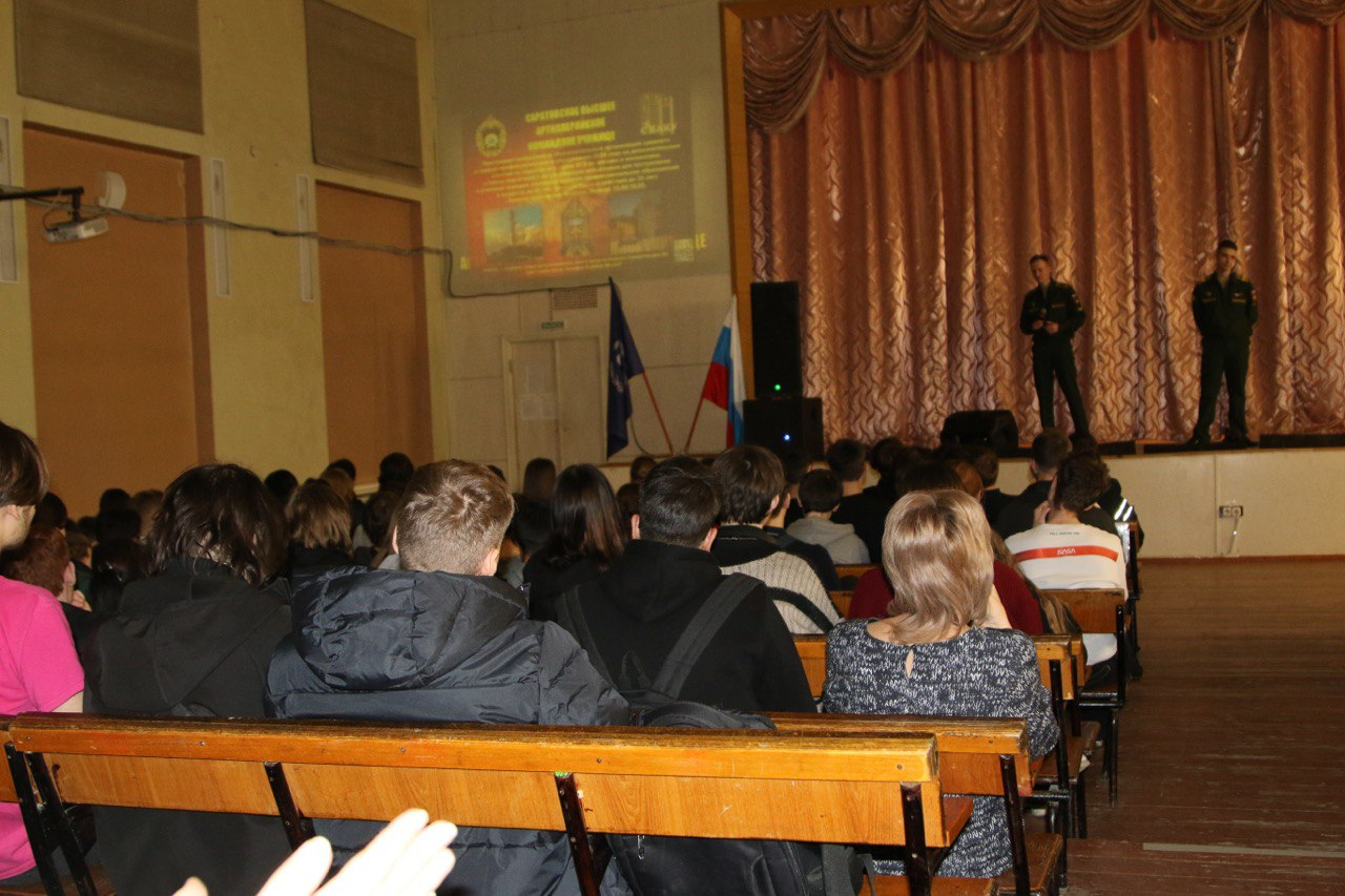 Курсанты рассказали ребятам о своем пути в военную профессию и о фронтовых буднях, поделились с ребятами своими мыслями о том, что значит быть защитником Отечества, показали студентам видеоролик об Артиллерийском училище и пригласили парней продолжить свое обучение в СВАКУ после окончания колледжа. В завершении встречи Максим и Дмитрий ответили на многочисленные вопросы студентов: от быта курсантов до личных переживаний и планов на будущее.