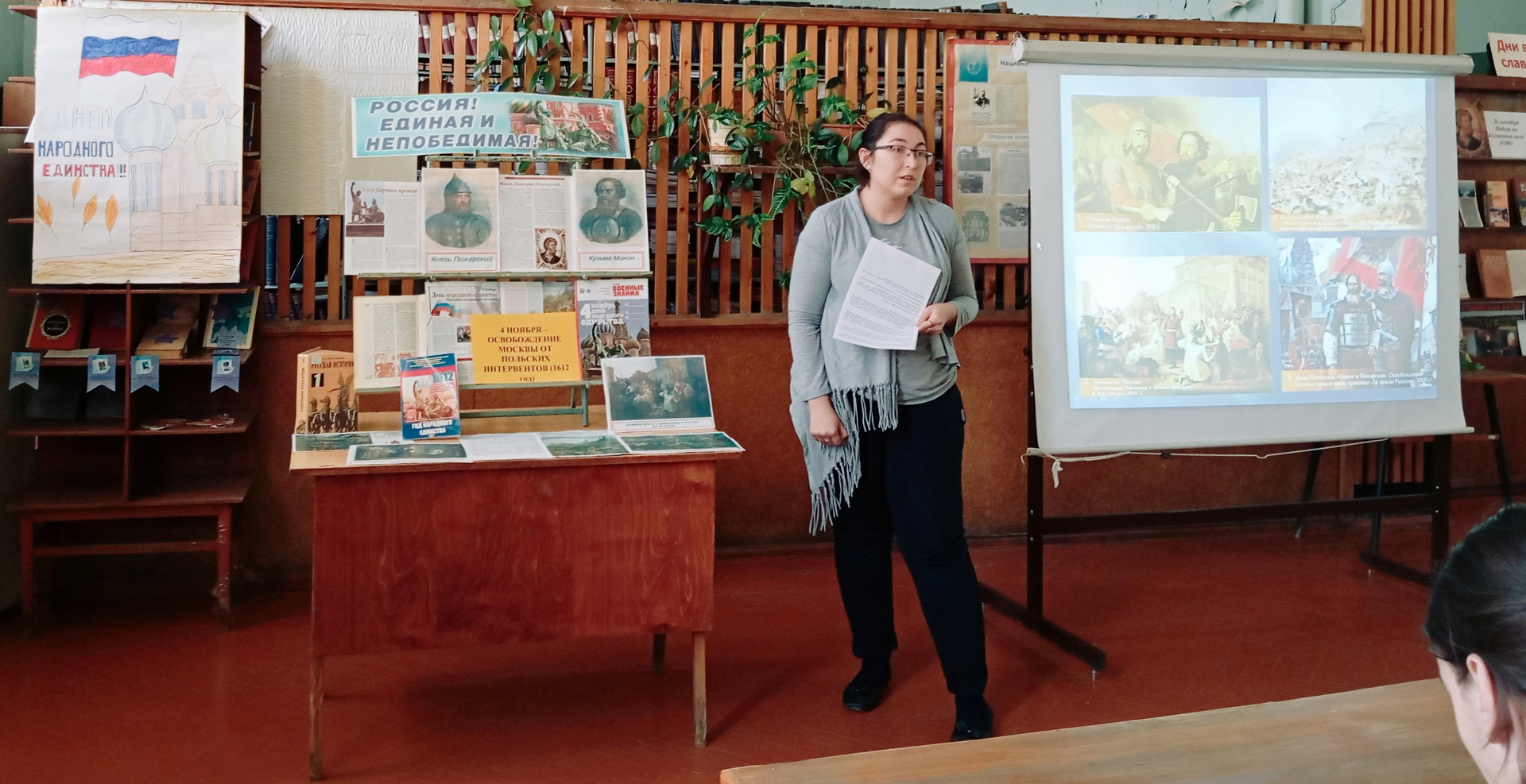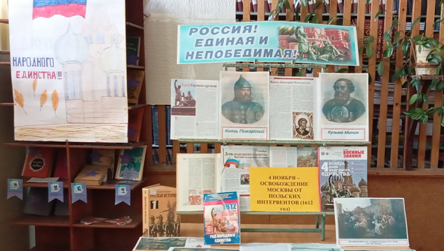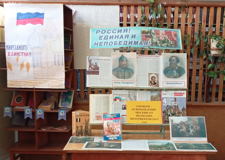 К мероприятию в библиотеке КРЭ открылась книжно – иллюстративная выставка, посвященная подвигу Кузьмы Минина и Дмитрия Пожарского.
