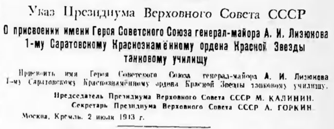 О присвоении училищу имени героя СССР А.И. Лизюкова. [13]