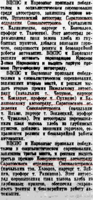 В газетах «Правда» и «Известия» от 16 сентября 1942 года опубликованы результаты Всероссийского социалистического соревнования. ВЦСПС и Наркомзаг признали победителями в соревновании, занявшими третьи места, и решили выдать третьи премии следующим предприятиям: в т.ч. Саратовскому мельзаводу № 1 (директор т. Ямин, парторг т. Елисеев, предзавкома т. Грачёв).