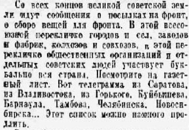 На первой странице «Правды» от 27 октября описывается священная дружба фронта и тыла [5, 10].