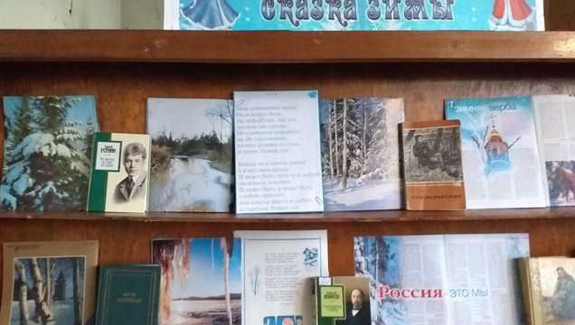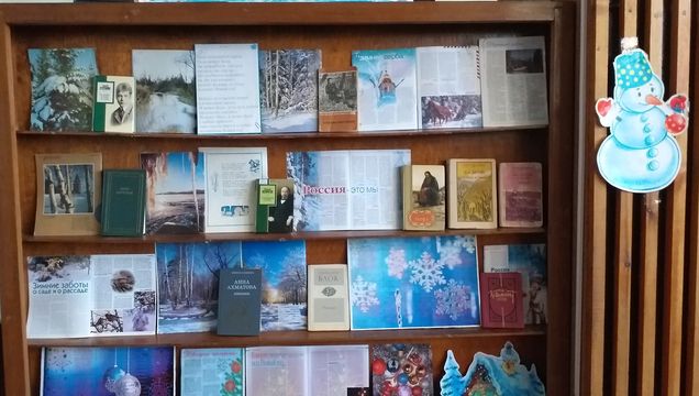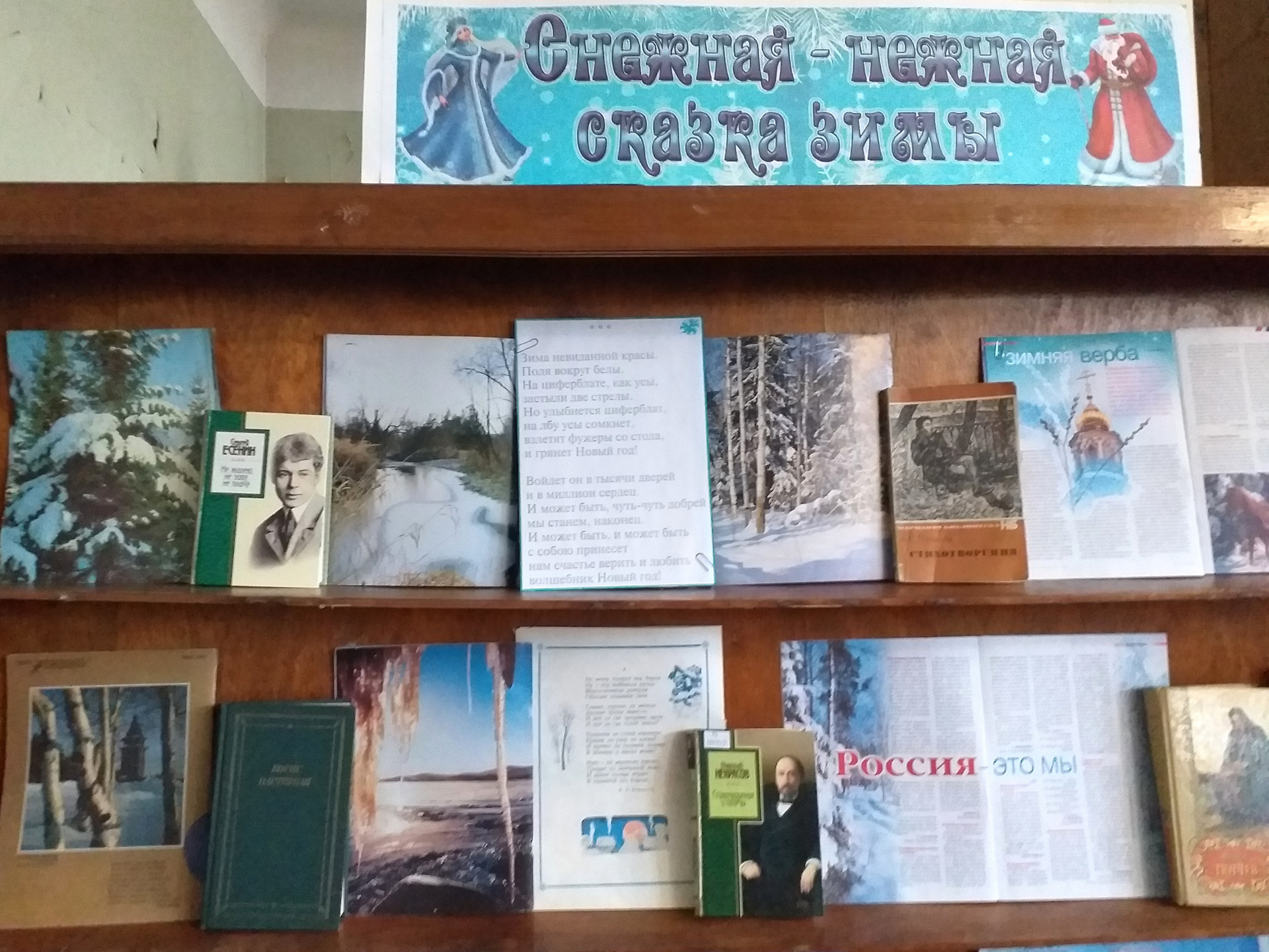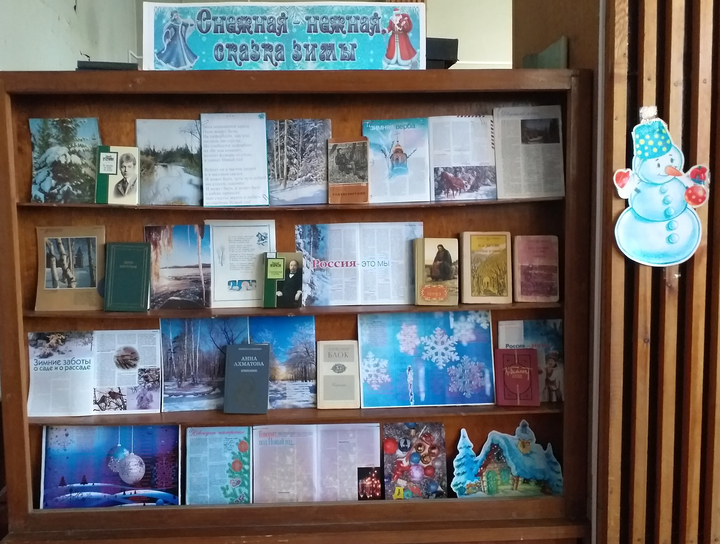 На книжно — иллюстративной выставке представлены произведения известных авторов, журналы о зиме и зимних праздниках.