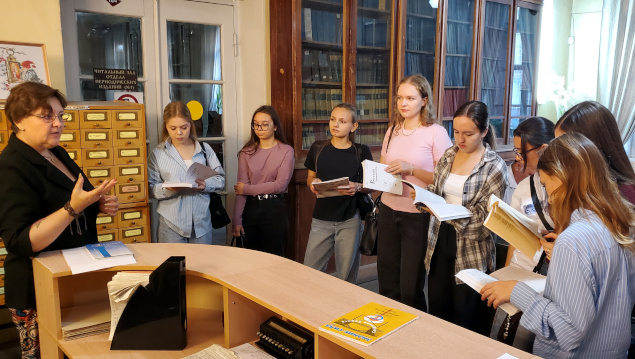 24 сентября студенты 141 группы (направление обучения «Педагогическое образование», профиль «Филология») факультета гуманитарных дисциплин, русского и иностранных языков Педагогического института СГУ побывали в ЗНБ СГУ на ознакомительной экскурсии.