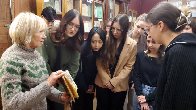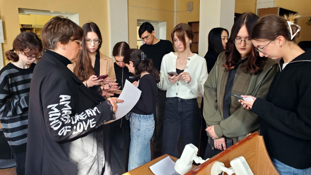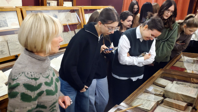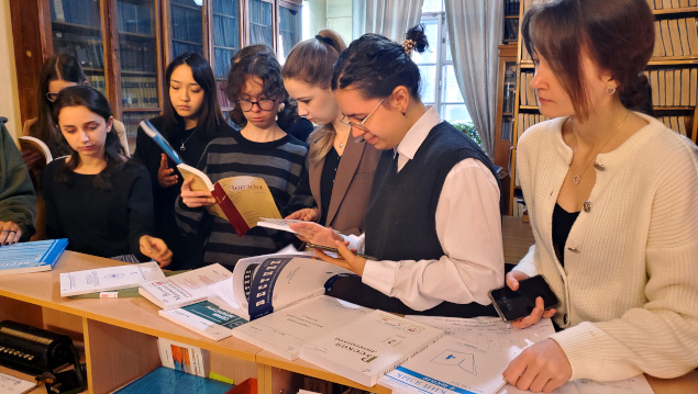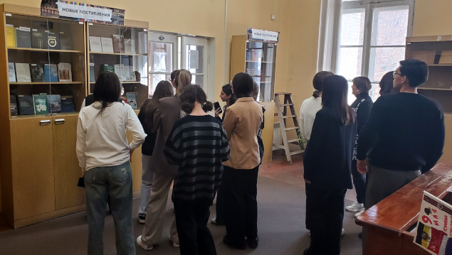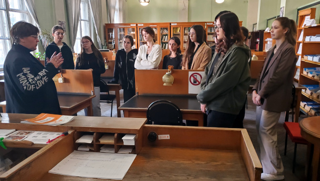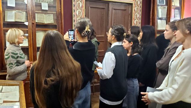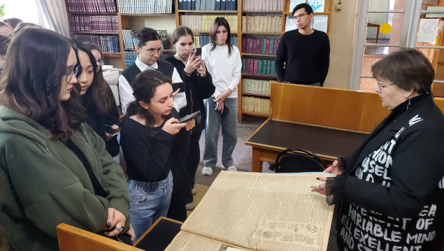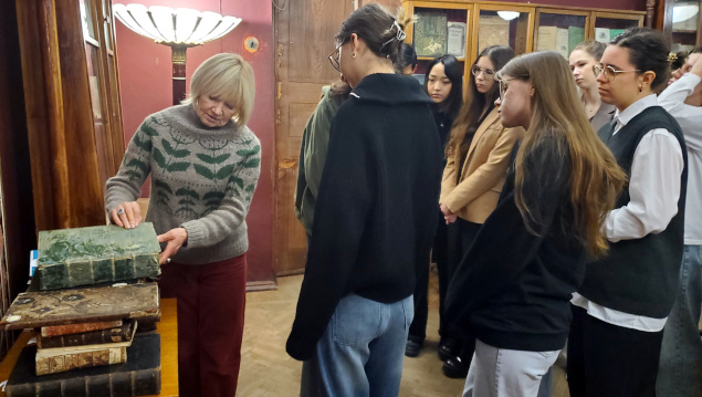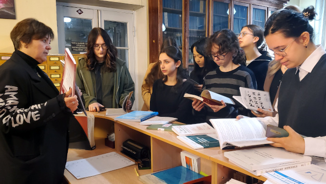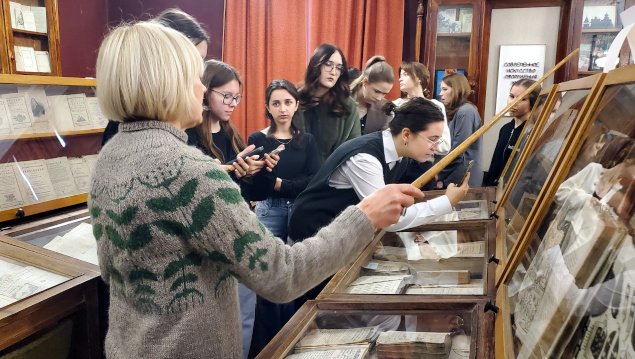 На выставке по истории русской книги студенты узнали об особенностях рукописных и старопечатных изданий, о журналах екатерининского, петровского времени и Серебряного века, увидели издания с автографами, познакомились с особенностями формирования фонда отдела редких книг и рукописей, услышали о коллекционерах-дарителях.