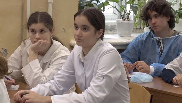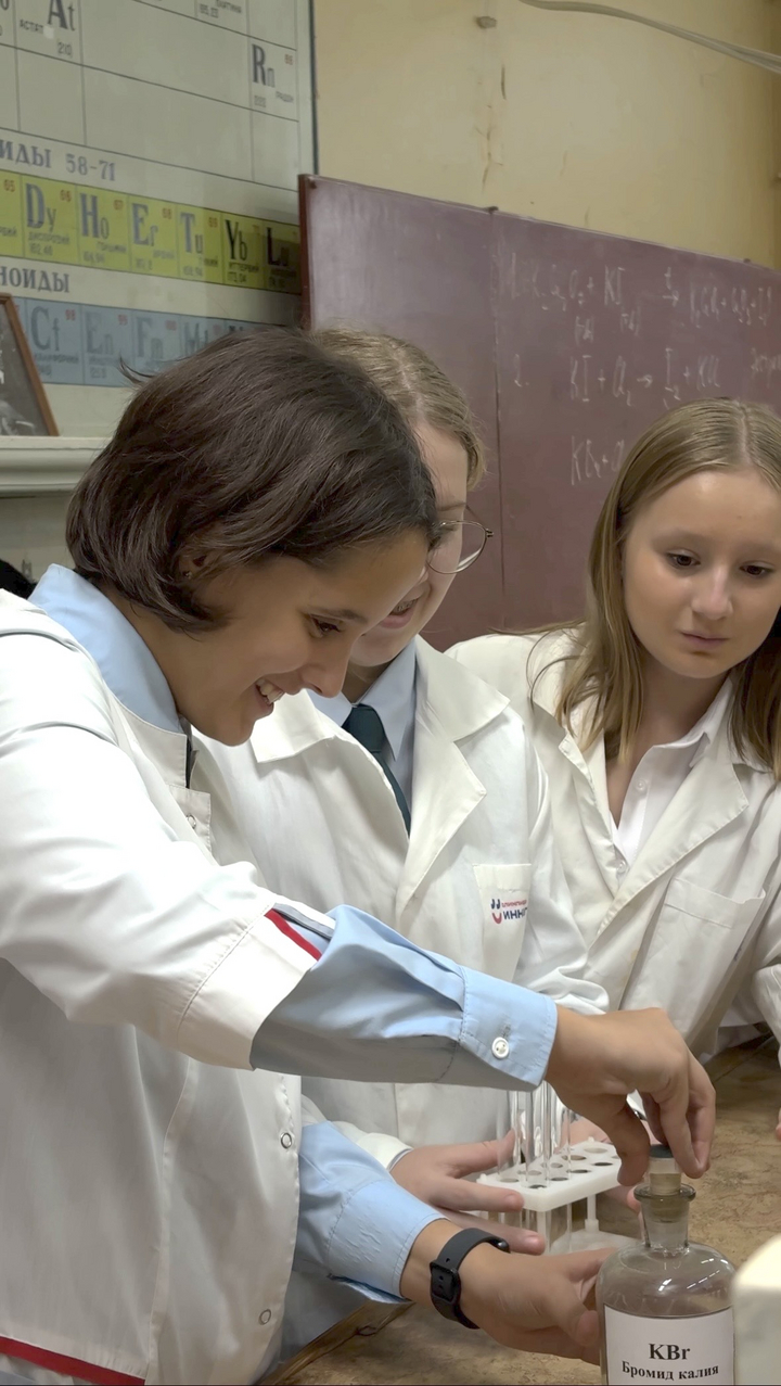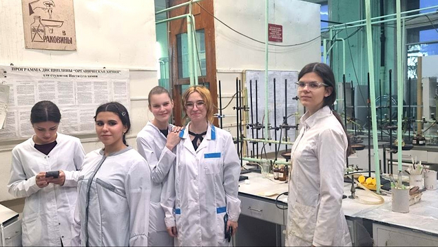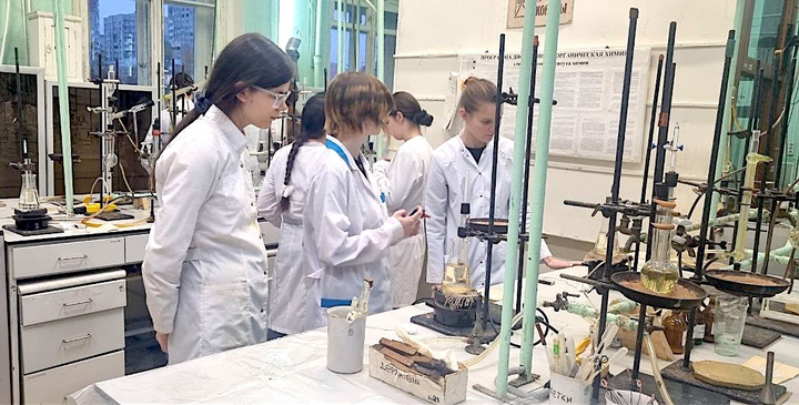 15 и 22 октября на кафедре общей и неорганической химии учащиеся 9-х классов познакомились с устройством химической лаборатории, обсудили назначение лабораторного оборудования, узнали о разнообразии химической посуды и её предназначении, ознакомились с техникой безопасности при работе в лаборатории. После обсуждения теоретических основ очистки и концентрирования неорганических веществ, учащиеся успешно справились с первой лабораторной работой. Был рассмотрен процесс получения и очистки кристаллического иода возгонкой. Фильтрованием и перекристаллизацией очищен медный купорос от примесей, получены и сконцентрированы бром и иод из водных растворов с помощью жидкостной экстракции. Организовали и провели занятие профессор кафедры Черкасов Д.Г и магистрант Зубарев К.Е. совместно с инженерами кафедры Меняйло И. и Решетник И.. Помогали им студенты 1 курса Института химии СГУ.