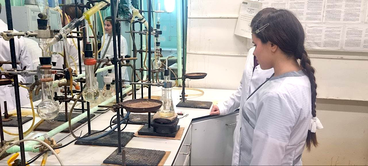 На занятии 18 октября юные химики 11-х классов на кафедре органической и биоорганической химии узнали, какая химическая посуда присутствует в арсенале химика-органика. Колба Бунзена, воронка Бюхнера, фильтр Шотта, обратный холодильник Либиха стали им знакомы не понаслышке. Ученики самостоятельно провели процесс возгонки и перекристаллизации, перегонки органических растворителей, а также провели идентификацию органических растворителей на рефрактометре. Проводили занятия к.х.н, доцент кафедры Амальчиева О.А. и аспирант кафедры Скляр А.Е.