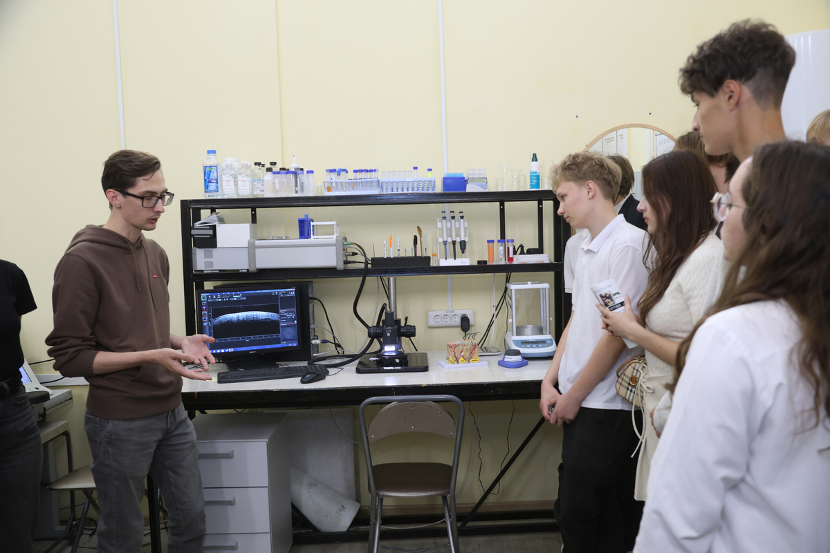 На практической части занятия школьники познакомились с работой программируемых робототехнических комплексов. Десятиклассники увидели технологическое оборудование фаблаба «Цифровые интегративные биоинженерные системы» и других исследовательских площадок Института физики. Участники изучили робототехнические системы, используемые в научно-исследовательских лабораториях университета.