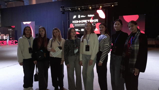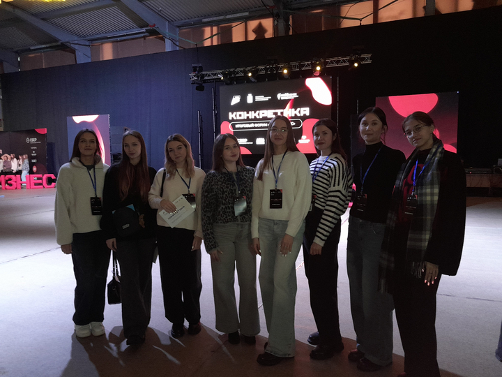 15 декабря 2025 года студенты 1‑го курса направления «Менеджмент» (группы 121 и 122) экономического факультета СГУ вместе с куратором, доцентом Голубевой С.С. стали участниками итогового форума «Конкретика‑2025», организованного центром «Мой бизнес».