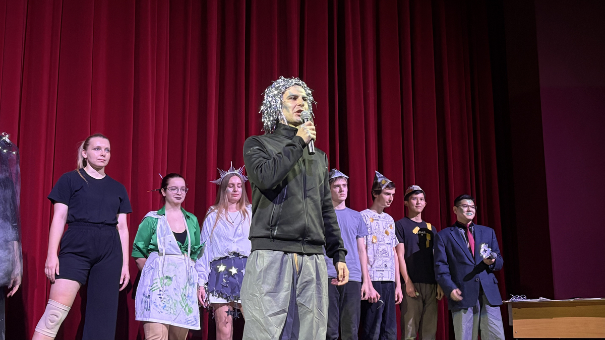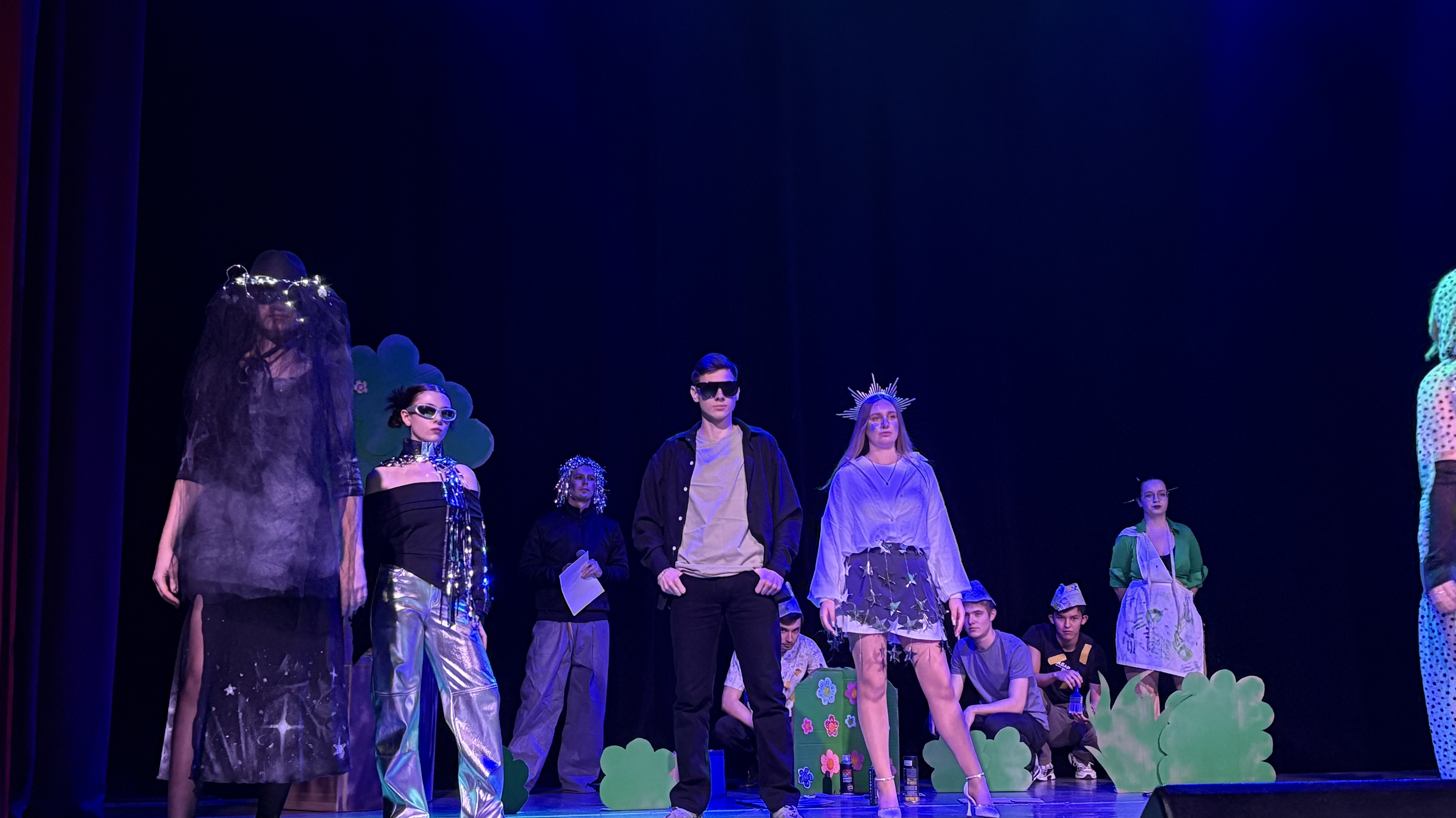 Алексей Лощинин исполнил песню группы Винтаж «Знак водолея», которая замечательно вписалась в идею всего номера о связи между галактиками. Сальвина Сазонова показала танец с акробатическими элементами под трек группы «Маша и Медведи» – «Земля». Сальвина доказала, что танец – не просто совокупность хаотичных движений под музыку, а искусство, которое помогает выразить чувства. Алексей Дмитриев прочитал стихотворение Александра Башлачева «Галактическая комедия», в котором лирический герой размышлял о связи людей через пространство и поиске родственных душ. Студенты также включили в постановку межгалактический показ мод.