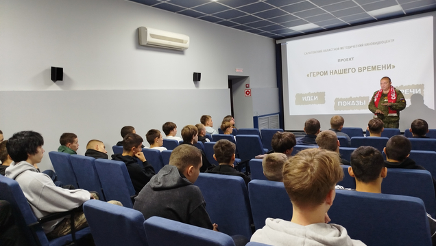 О.А. Евлентьева и студенты геологического колледжа специальности 15.02.12 Монтаж, техническое обслуживание и ремонт промышленного оборудования посетили киноклуб «Герои нашего времени» в Саратовском областном методическом киновидеоцентре и приняли участие в Всероссийской акции «Спасибо, что #МЫВМЕСТЕ», приуроченная к празднованию Дня воссоединения Донецкой и Луганской народных республик, а также Запорожской и Херсонской областей с Россией.