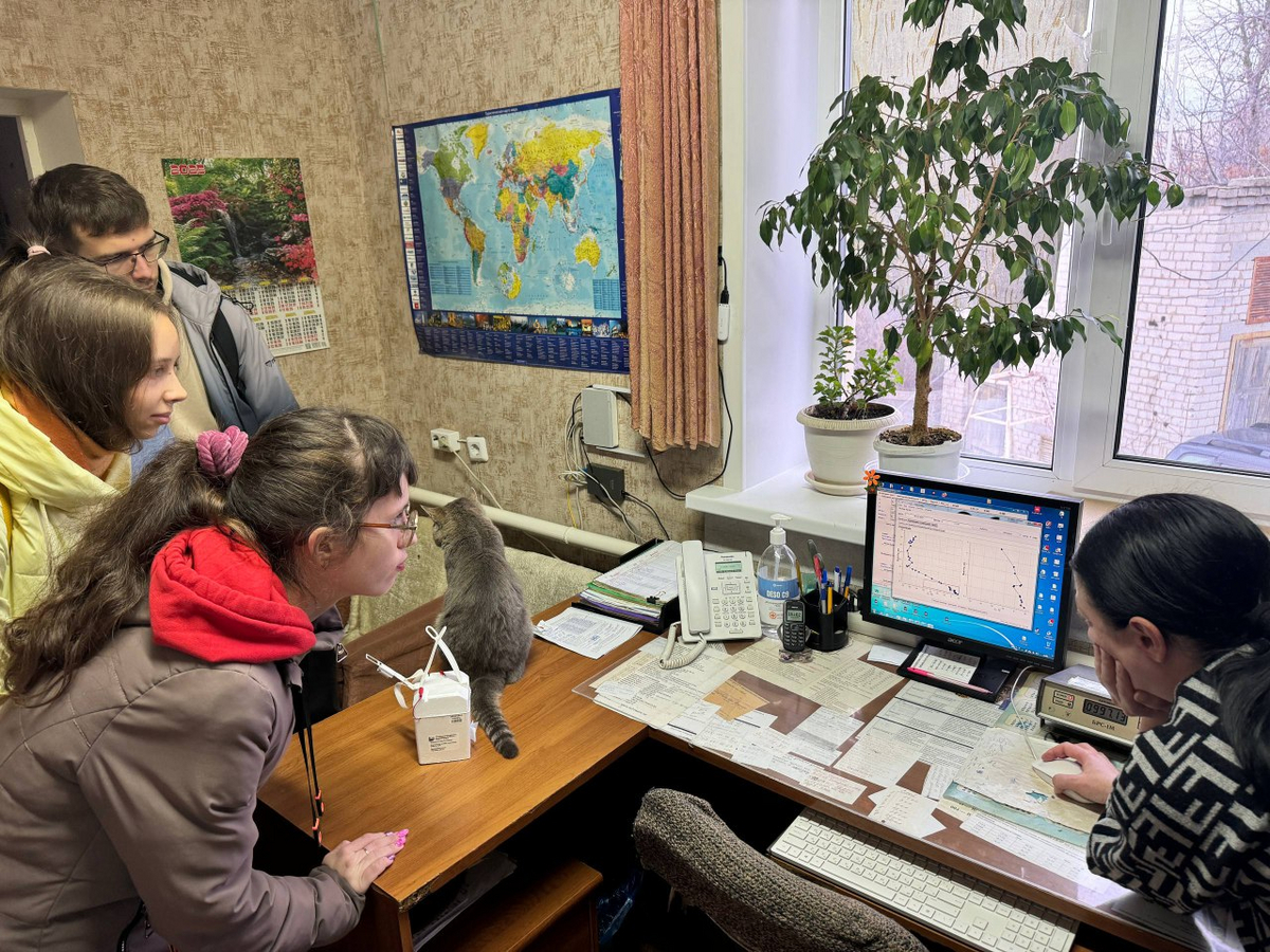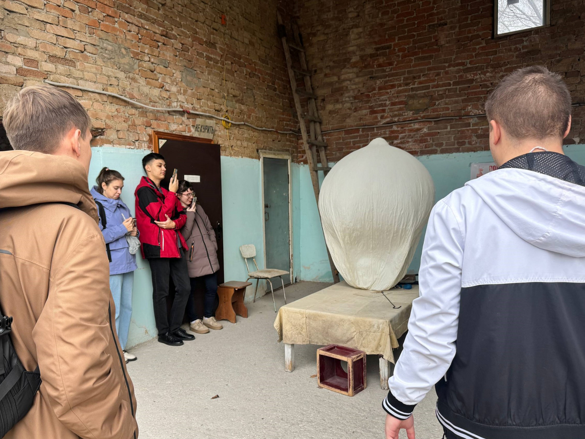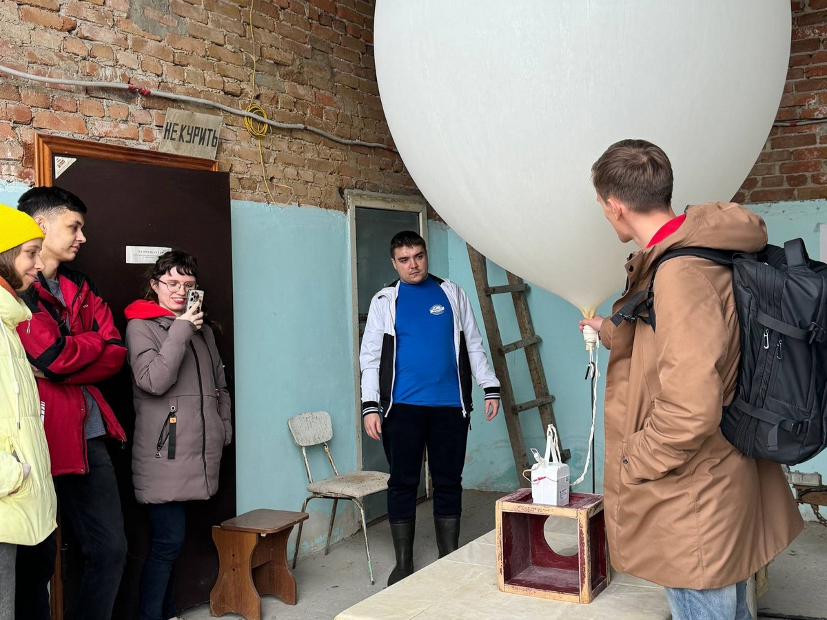 На аэрологической станции участники узнали, как проводится процедура аэрологического зондирования. Сотрудники станции подробно показали, как подготавливается и проверяется радиозонд: сборка, проверка телеметрии, наполнение оболочки водородом. Затем студенты под руководством специалистов самостоятельно запустили шар-зонд в атмосферу. Радиозонд поднимается на высоту примерно 30 километров, передавая данные о температуре, влажности, давлении и скорости ветра. После завершения зондирования участники провели анализ полученных метеорологических данных.