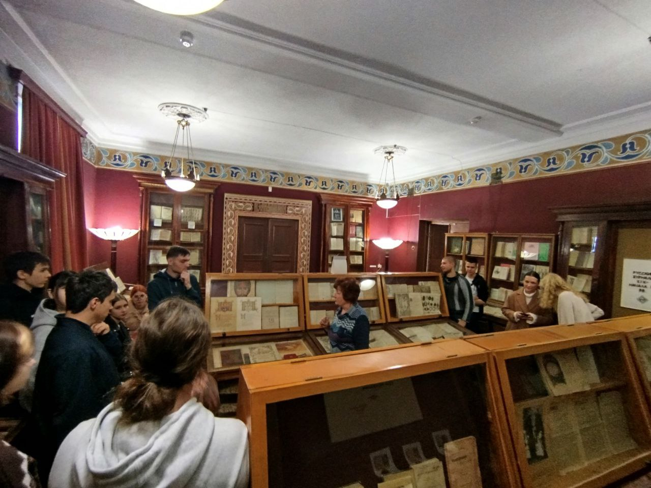 Студенты 171 группы направления обучения «Социальная работа» Социологического факультета СГУ посетили отдел редких книг и рукописей Зональной научной библиотеки имени В.А. Артисевич. На выставке по истории русской книги студенты узнали об особенностях рукописных и старопечатных изданий, о журналах екатерининского, петровского времени и Серебряного века, увидели издания с автографами, познакомились с особенностями формирования фонда отдела редких книг и рукописей, услышали о коллекционерах-дарителях.