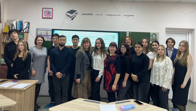 В рамках Марафона профессионального развития студенты 4 курса профилей «Русский язык. Литература» под руководством доцента кафедры филологических дисциплин Л.А. Мельниковой посетили МАОУ СОШ № 9 имени П.А. Столыпина г. Балашова. На ее базе учителями-словесниками К.В. Рощиной и Е.Е. Щербаковой была организована методическая гостиная «Урок литературы в ХХI веке».