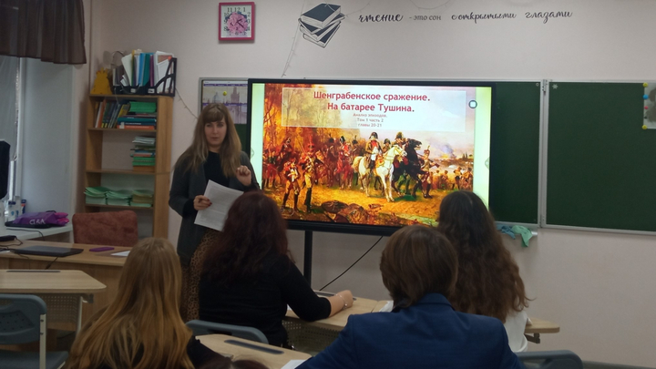В ходе мероприятия с четверокурсниками были проведены 2 мастер-класса. Е.Е. Щербакова продемонстрировала фрагмент урока литературы для 10 класса, посвященного анализу батальных сцен из романа Л.Н. Толстого «Война и мир». В процессе занятия Екатерина Евгеньевна наглядно показала будущим педагогам, какие возможности для повышения качества обучения дает грамотное использование на уроке междисциплинарного подхода, элементов интермедиального анализа художественных произведений, а также приема комментированного чтения.