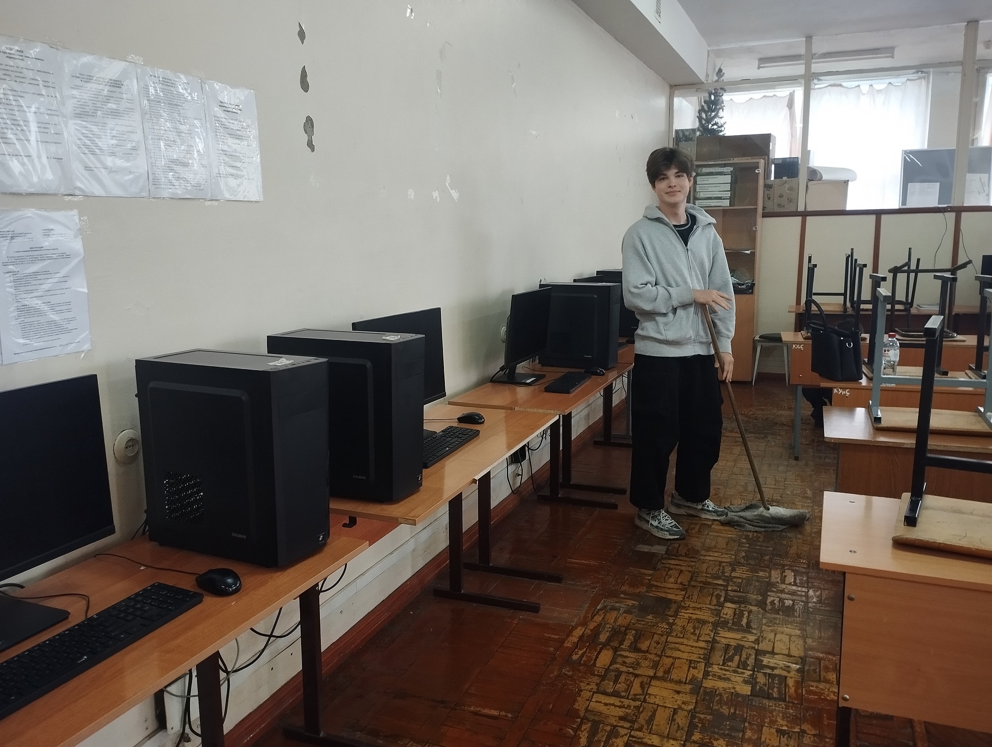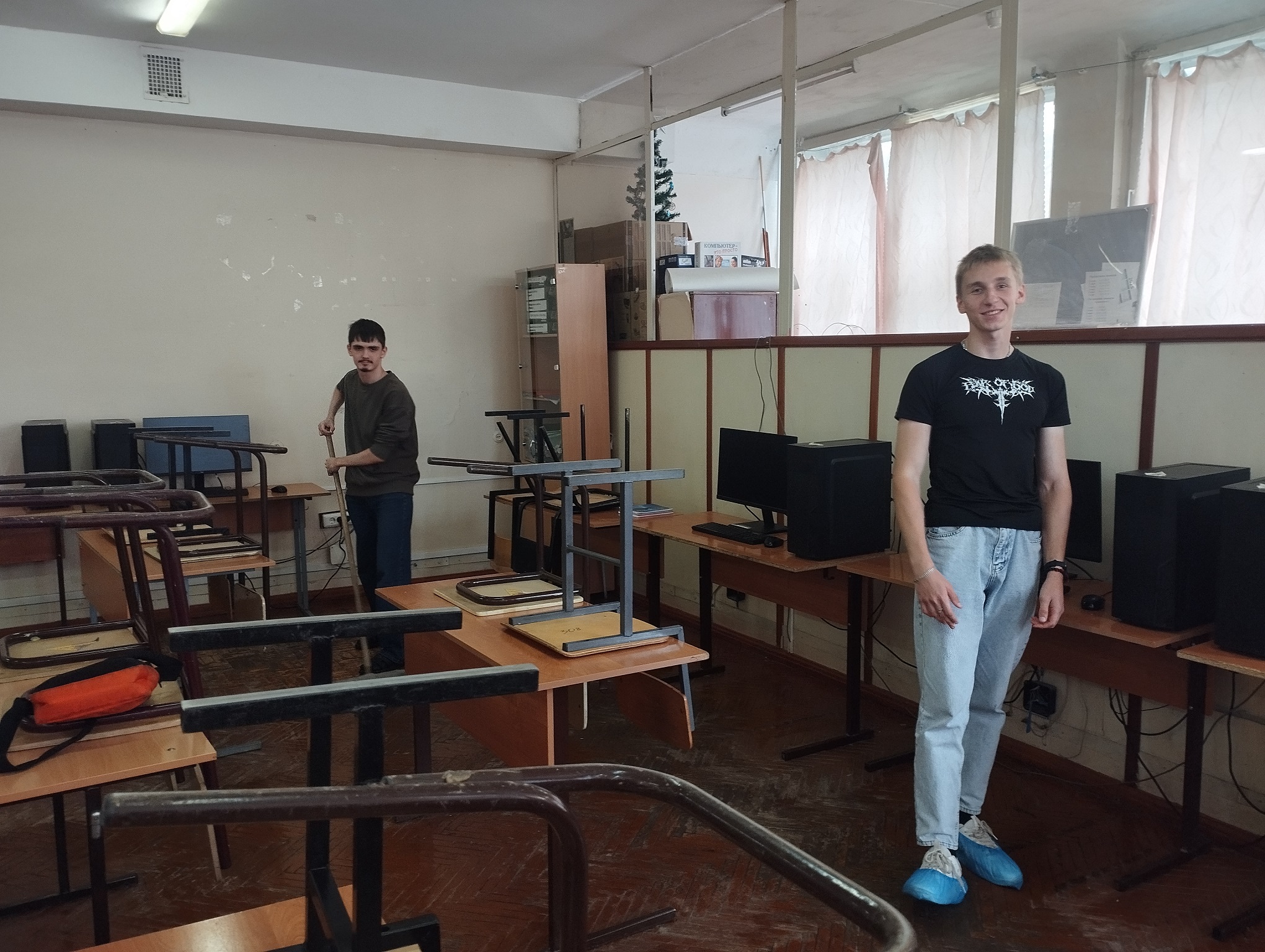 В группах 9271 и 9371 (классный руководитель Е.С.Сотова) проходиди санитарно-хозяйственные классные часы по генеральной уборке лаборатории №307.