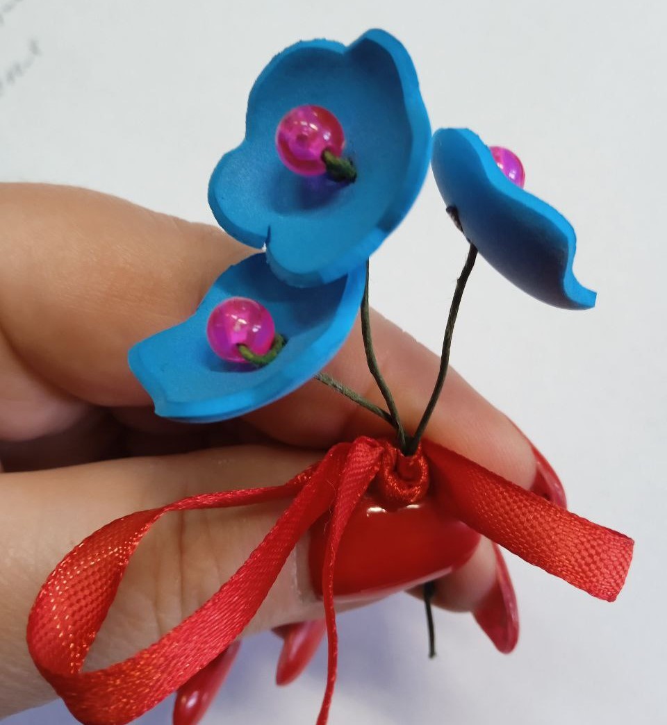 В этом году такими сувенирами стали броши-Незабудки, выполненные из фоамирана. Нежно-голубая незабудка стала символом Дня матери в России, олицетворяя память, преданность и бескорыстную материнскую любовь. Этот цветок выбран неслучайно — согласно древним поверьям, незабудка обладает волшебной силой напоминать о забытых любимых и близких людях.
