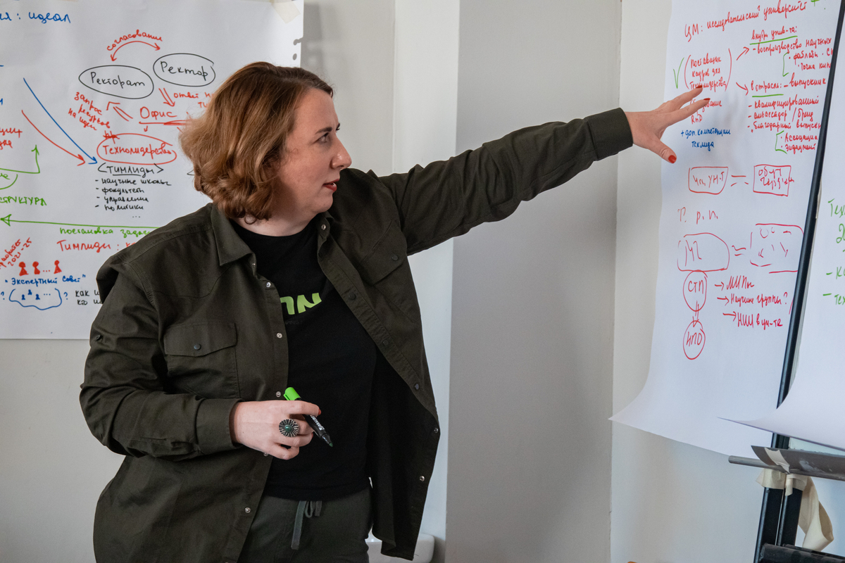 На протяжении двух дней участники сессии разрабатывают оптимальную модель управления университетом для эффективного выполнения целевых показателей.