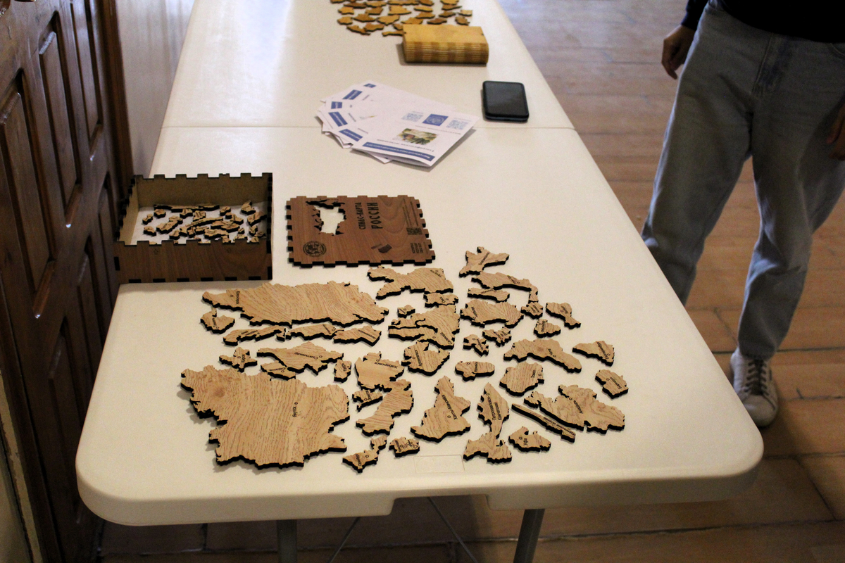 На площадке «Спилс-карты» школьники вместе со студентом географического факультета СГУ Тамерланом Жумашевым собирали пазлы из карт России и Саратовской области.