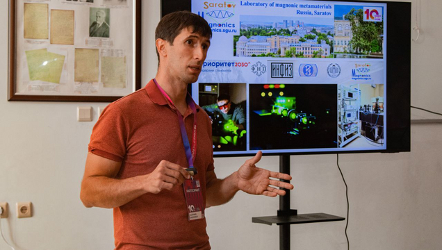 Заместитель директора научно-исследовательского института механики и физики (НИИМФ) СГУ А.В. Садовников открыл заседание сессии «Физика. Химия. Новые процессы и материалы» в рамках форума «Наука будущего – наука молодых». Его лекция была посвящена устройствам функциональной магноники.