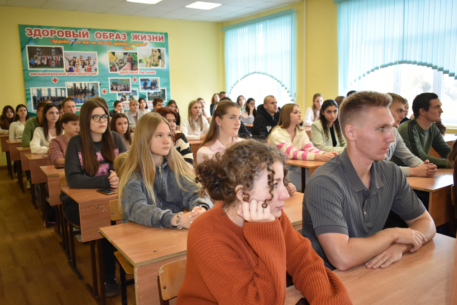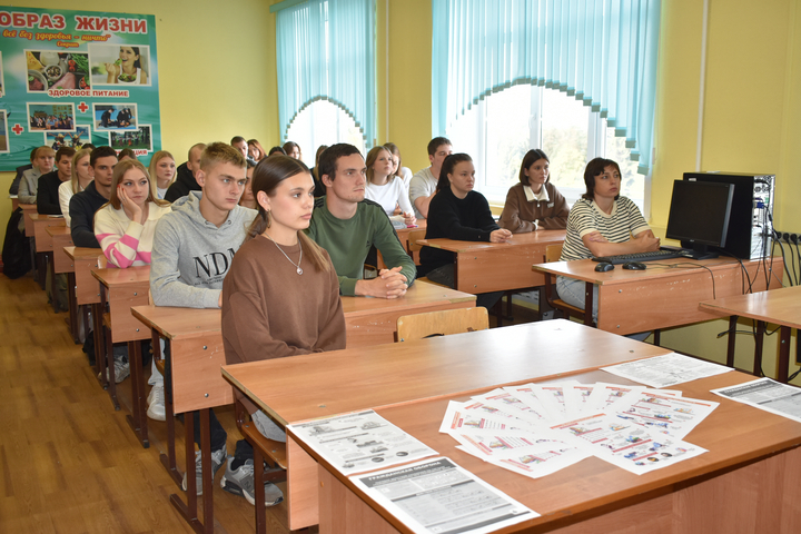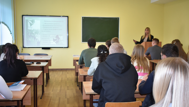 Ольга Владимировна акцентировала внимание присутствующих на важности обучения населения порядку действий по сигналам оповещения, которые часто слышны на улицах городов. Знания правил поведения и адекватность действий при сигналах оповещения, а также умение действовать быстро и без паники помогут сохранить жизнь и здоровье. Наталья Александровна рассказала, как защитить себя при беспилотной, авиационной или ракетной атаке. Со студентами были отработаны алгоритмы действий при нахождении в здании, в транспорте, в образовательной организации и на улице. Также обучающиеся подробно рассмотрели статью 7.5.1, которая является дополнением к региональному закону «Об административных правонарушениях» и предусматривает ответственность за публикацию и распространение в СМИ, сети Интернет и мессенджерах информации, касающейся применения и последствий применения на территории региона беспилотных воздушных судов.