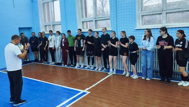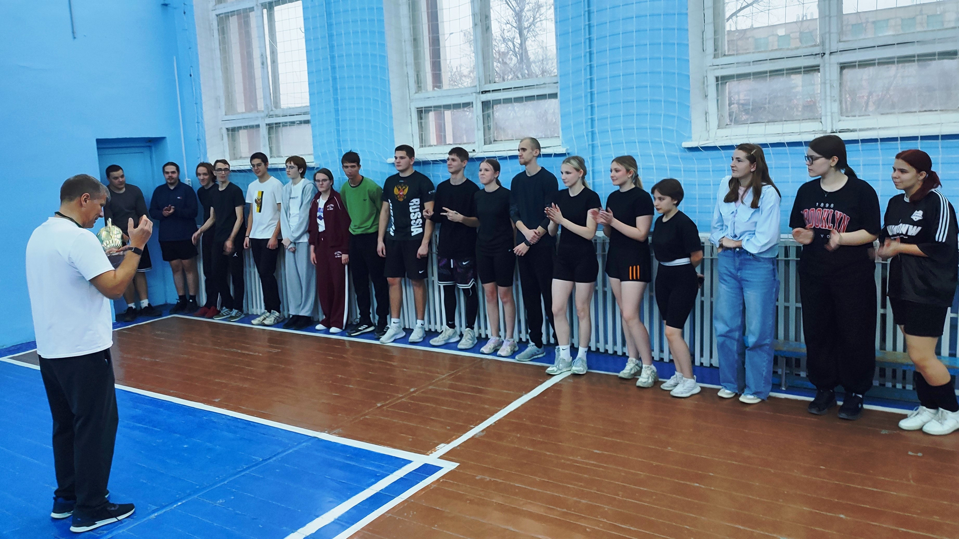 В спортивном зале главного корпуса БИ СГУ состоялись соревнования среди студентов в рамках спартакиады на «Приз Первокурсника», посвященной Году защитника Отечества.