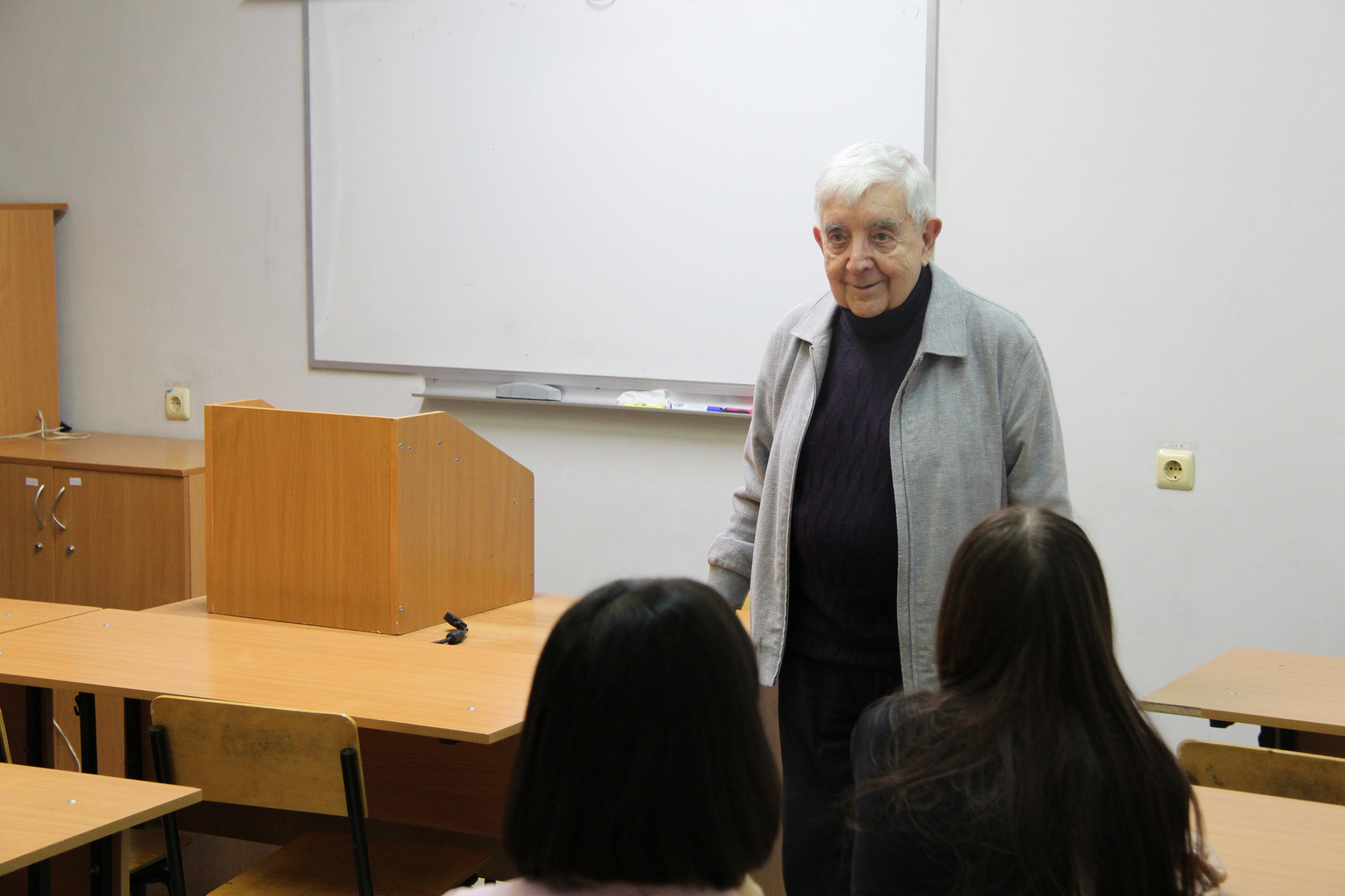 В среду, 22 октября, научный руководитель Института филологии и журналистики, заведующий кафедрой общего литературоведения и журналистики, профессор В. В. Прозоров провёл занятие в Клубе абитуриентов ИФиЖ. В начале встречи Валерий Владимирович поделился воспоминаниями о своих школьных годах, а затем познакомился с каждым старшеклассником и попросил рассказать о себе.