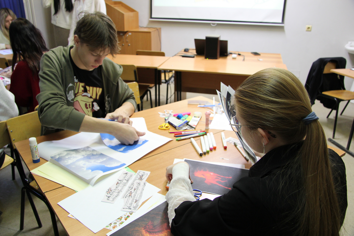 На втором туре участникам предложили выполнить творческое задание – создать коллаж на тему огненной лошади как символа наступающего 2026 года. На выполнение задания было отведено 20 минут. После этого каждая команда защитила свою работу, объяснив вложенную в неё идею.