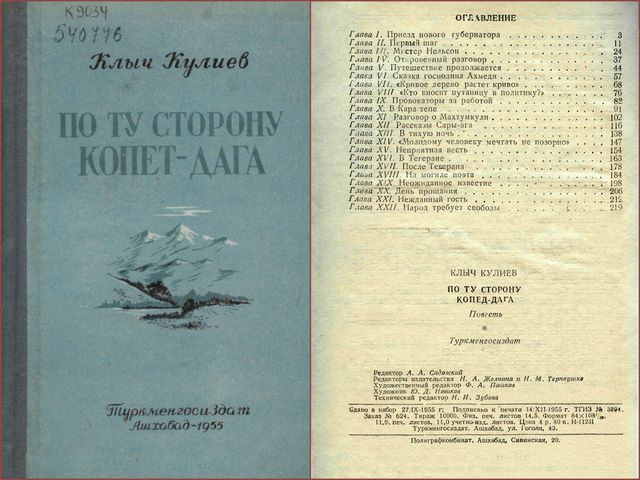 «Клыч Кулиев пришёл в литературу человеком зрелым, – пишет С. Алиева в статье «Верность революционным идеалам» (цит. по: Кулиев, К. Посол эмира : трилогия; Запоздалое раскаяние : роман : перевод с туркменского / Клыч Кулиев ; вступительная статья С. Алиевой. – Москва : Художественная литература, 1989. – 829, [3] с. – ISBN 5-280-00593-2. – Текст : непосредственный). – Его первая повесть «По ту сторону Копет-Дага», переведённая на русский язык Юрием Олешей, увидела свет, когда автору было уже за сорок».