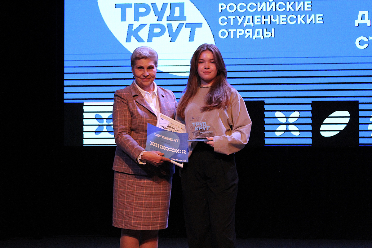 Победителем регионального конкурса вожатского и педагогического мастерства «Вдохновляй» стала студентка Саратовского областного педагогического колледжа – Преснякова Дарья, награду Дарье вручила председатель Комитета молодёжной политики А.А. Беловицкая.