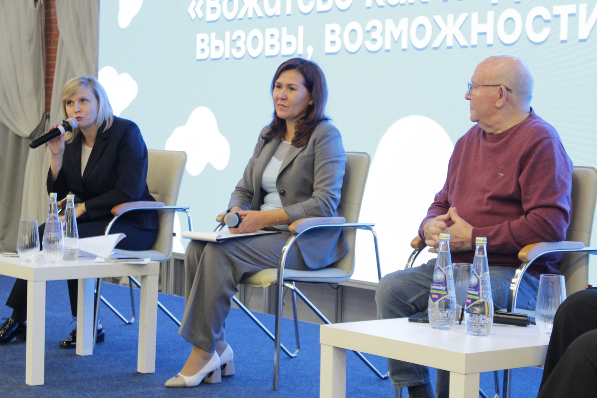 В первый день эксперты провели панельную дискуссию «Вожатство как педагогическая миссия: вызовы, возможности и перспективы». Заместитель директора Педагогического института СГУ Е.Н. Горина, доцент кафедры методологии образования О.А. Козлова, старший вожатый «Движения первых» Саратовской области К.В. Заплатникова, преподаватель специальных дисциплин Саратовского областного педагогического колледжа Т.А. Ленская, исполнительный директор АНО СОЦ «Берёзка» Б.К. Амхир обсудили: