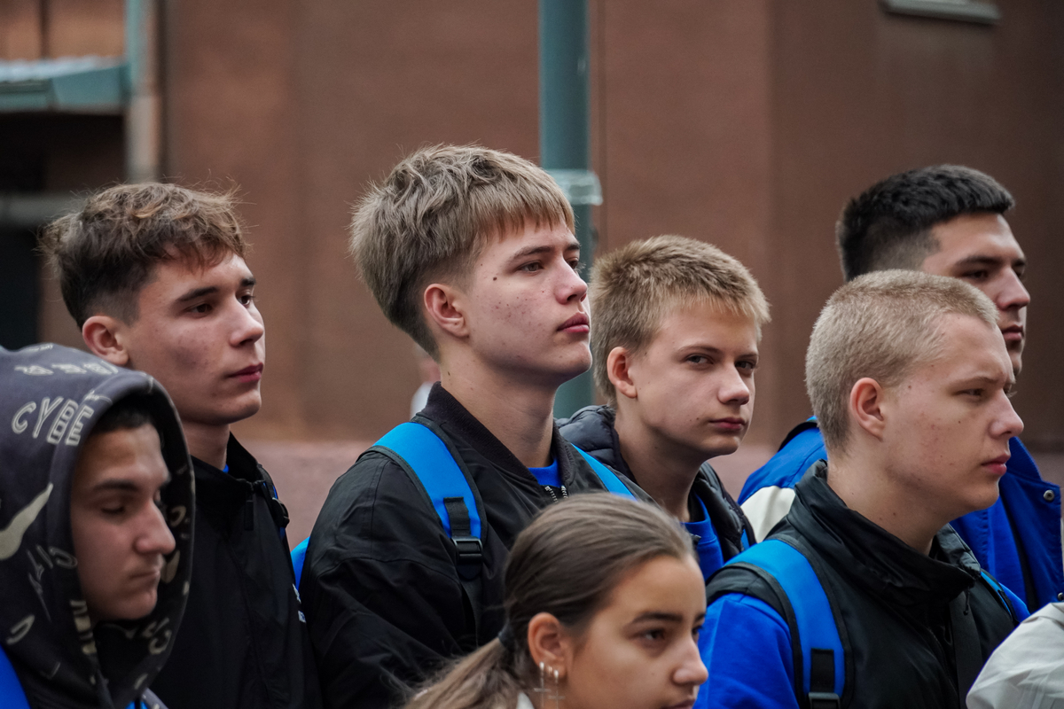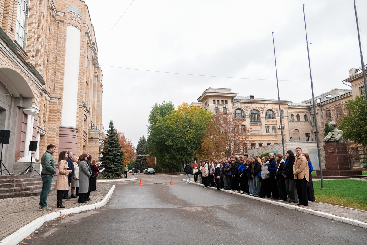 Торжественная церемония открытия прошла на Студенческой площади перед бюстом Н.Г. Чернышевского. Право поднять флаг под звуки гимна России предоставили ученику 10 класса школы №4 Шахтёрского муниципального округа ДНР Максиму Демуру.