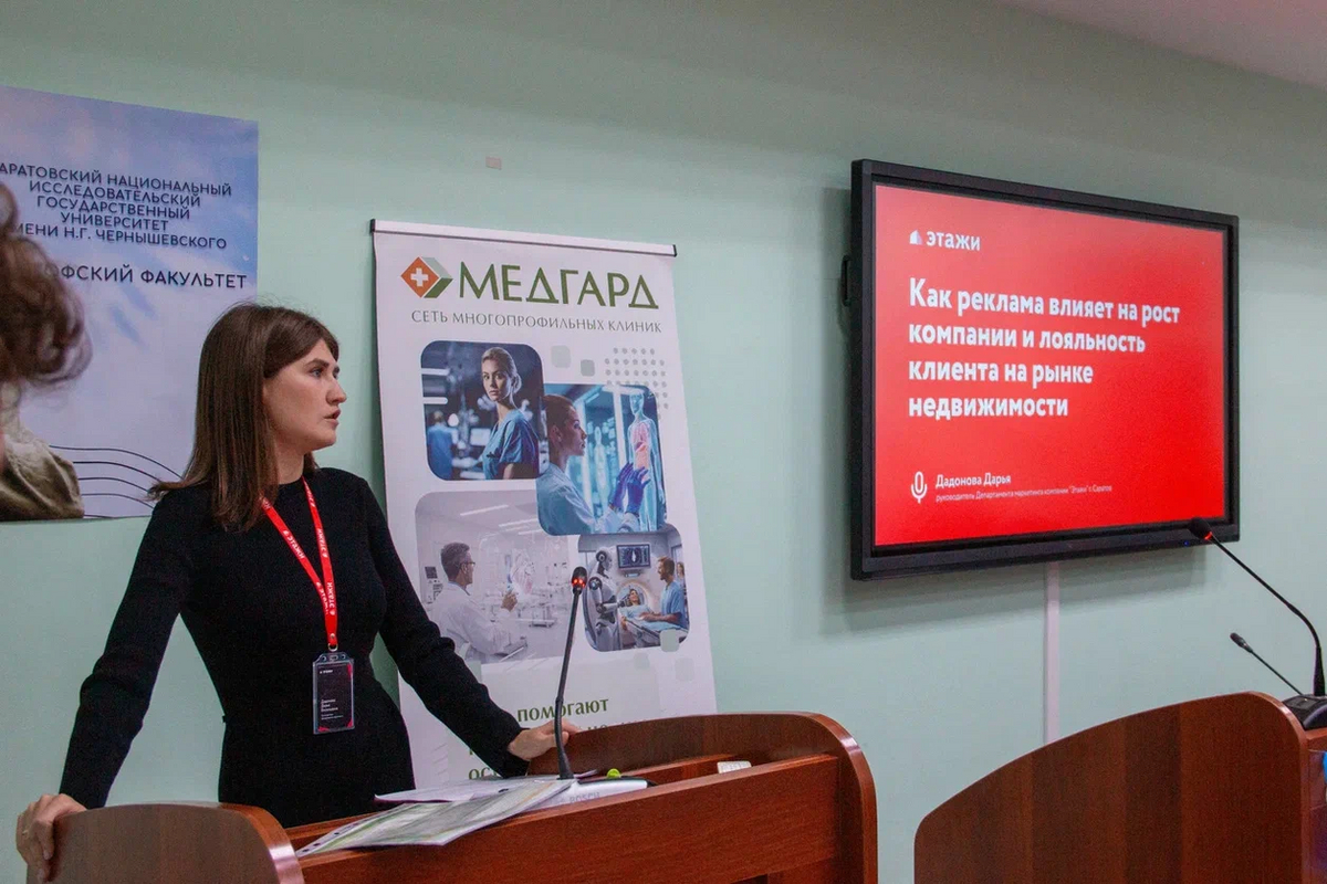 Заведующая кафедрой социальных коммуникаций О.Ю. Голуб обратила внимание на важность общения с работодателями - так рождается понимание современных трендов рынка рекламы. Ольга Юрьевна поблагодарила партнёров за участие и пожелала студентам не упустить уникальную возможность получить ценные советы и определить свои профессиональные ориентиры.