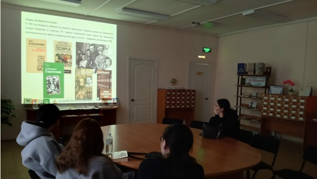 Будущие педагоги (химики) с интересом посмотрели презентацию о жизни и творчестве А. С. Макаренко «Сердце, разорванное пополам», в которую были включены отрывки из фильмов «Путёвка в жизнь», «Педагогическая поэма», «Республика ШКИД», «Флаги на башнях», повествующие о жизни брошенных детей. Материалы выставки «Я исповедую бесконечную уверенность в неограниченном могуществе воспитательной работы» познакомили студентов с изданиями самого А. С. Макаренко и материалами о жизни и творчестве педагога.