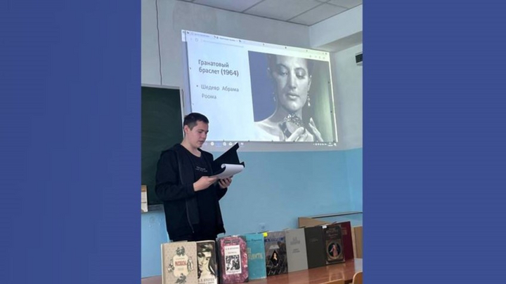 Во время мероприятия первокурсники также познакомились с тематической выставкой «Певец простого человека», подготовленной к юбилею писателя сотрудниками библиотеки.