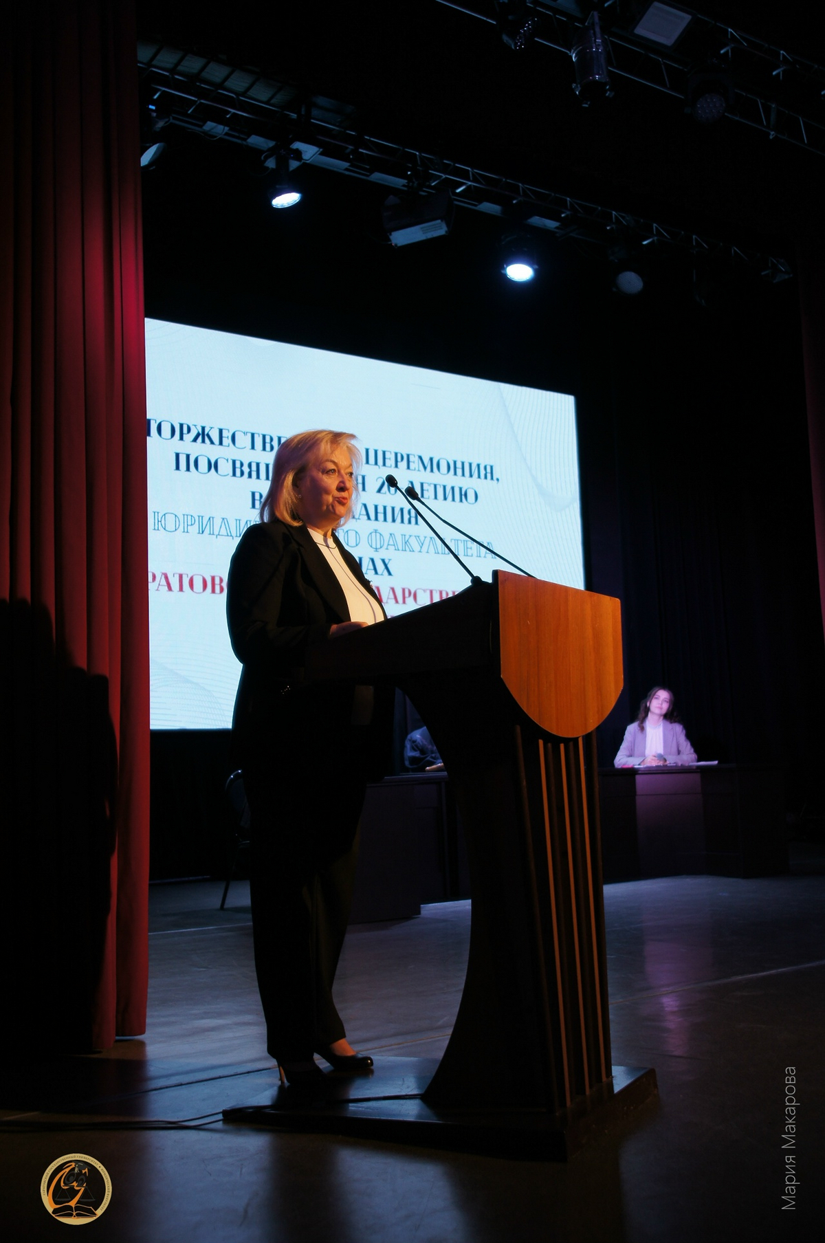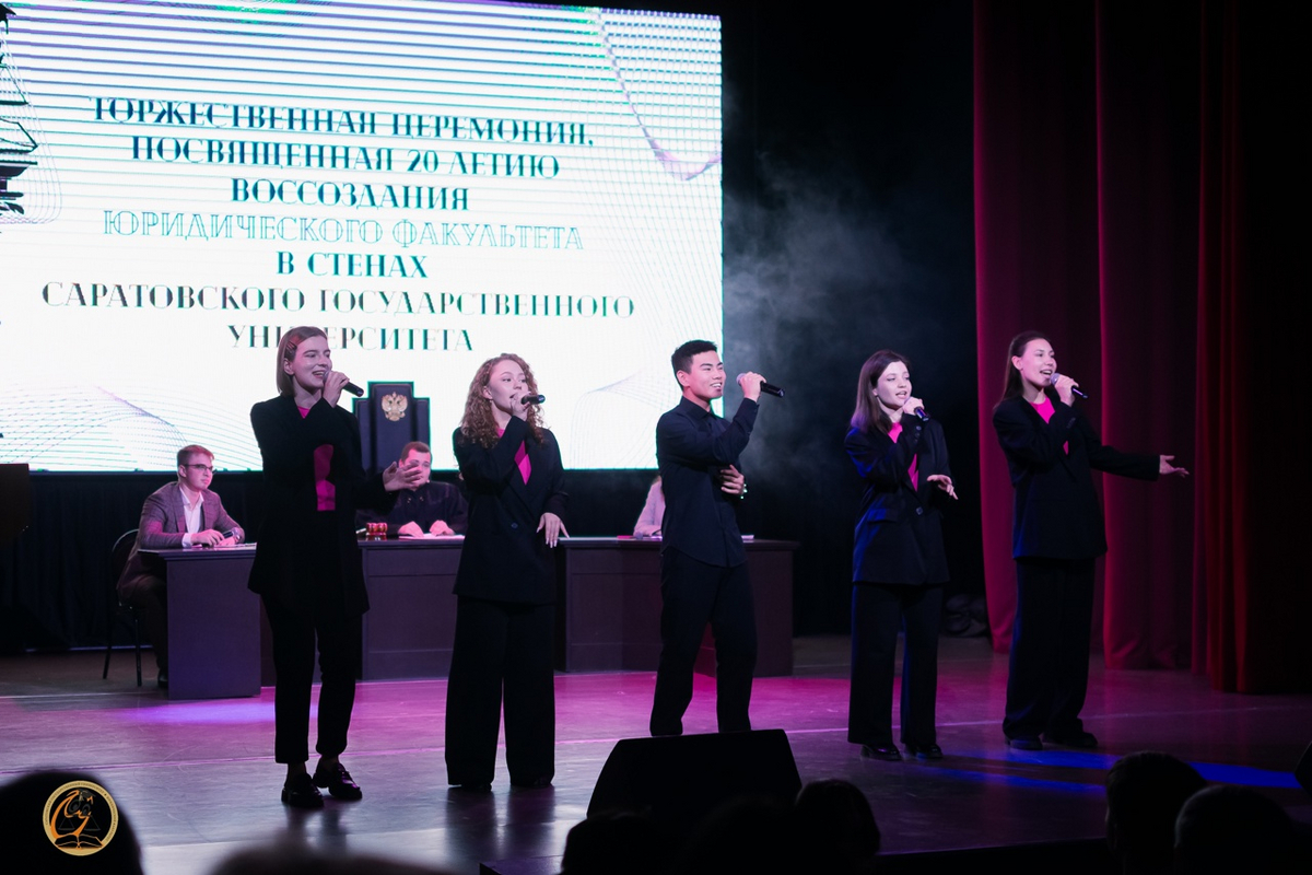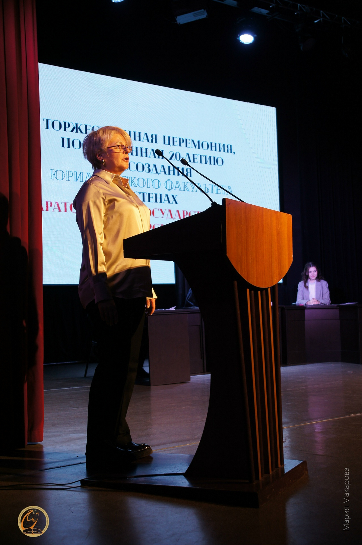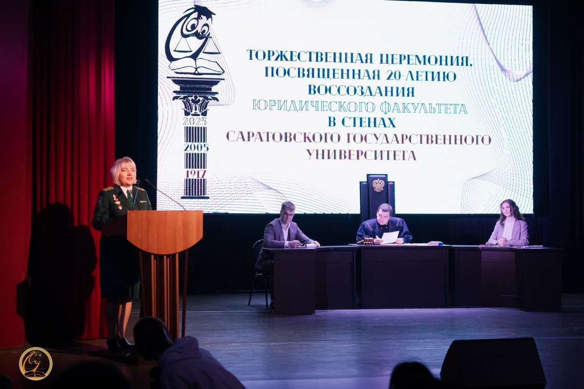 14 октября 2025 года в актовом зале Х корпуса состоялась Торжественная церемония, посвященная 20-летию воссоздания юридического факультета в стенах СГУ им. Н.Г. Чернышевского. Зрители стали свидетелями уникального судебного процесса по делу № 20: Время против Юридического факультета.