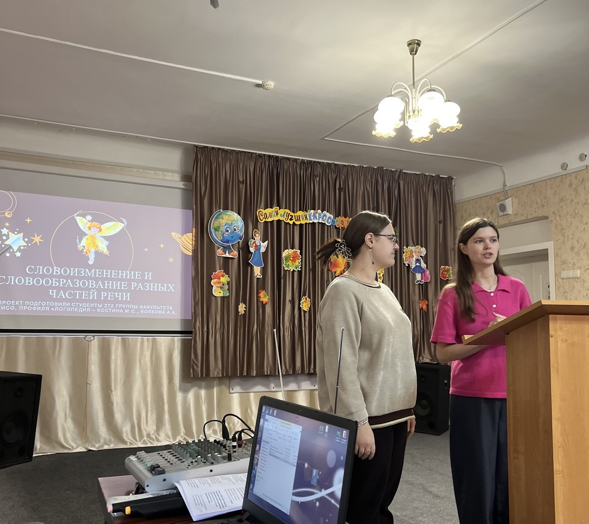 Творческий отчет магистрантов проходил в форме презентаций и защиты своих разработок. Каждый отчет вызвал большое количество вопросов от сокурсников и методистов-логопедов. Примечательно, что большинство заданий, разрабатываемых практикантами-логопедами, находит свое применение в учебном процессе школы. Тематика студенческих разработок разнообразна: это и «Словообразование и словоизменение в логопедической работе со школьниками», «Работа над предложением и главными членами предложения», «Логопедическая работа с предлогами», «Закрепление падежных окончаний имен существительных» и другие.