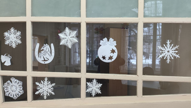 Студенты групп 1101 (классный руководитель С.В.Гришина), 1302 (классный руководитель Е.В.Вахлиш), 9371 и 9472 (классный руководитель Е.Б. Боева) украсили окна и кабинеты к Новому году.