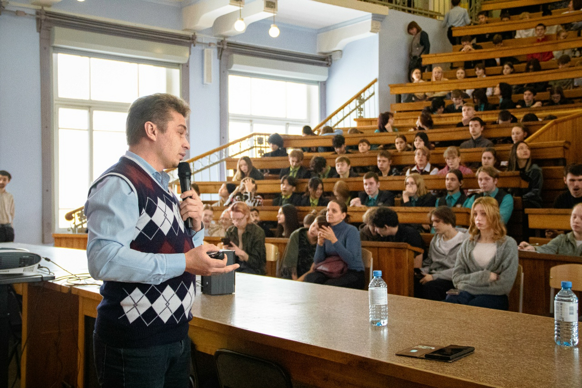 Помощник главного инженера Объединённого института ядерных исследований Е.Д. Углов на лекции «Нейтринный телескоп на озере Байкал» поделился, что такое частица нейтрино, какие методы используют учёные для её регистрации и для чего нужен телескоп на глубине 1 километр на озере Байкал.