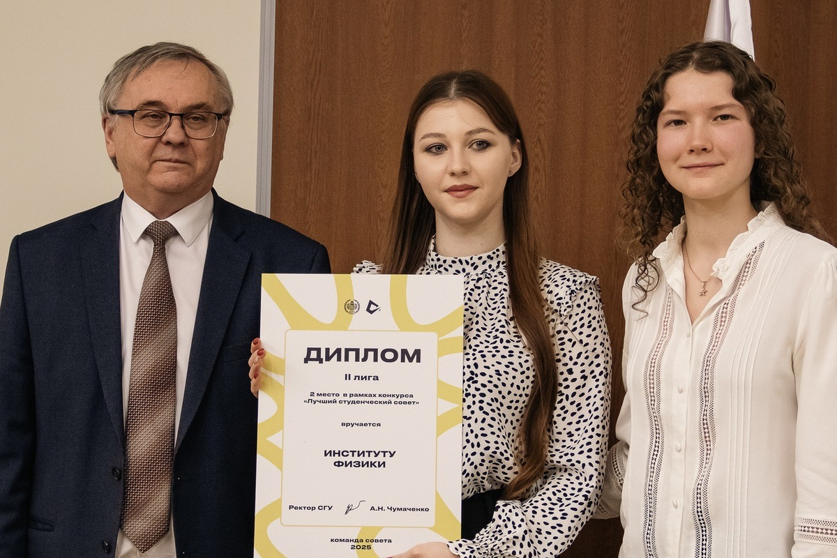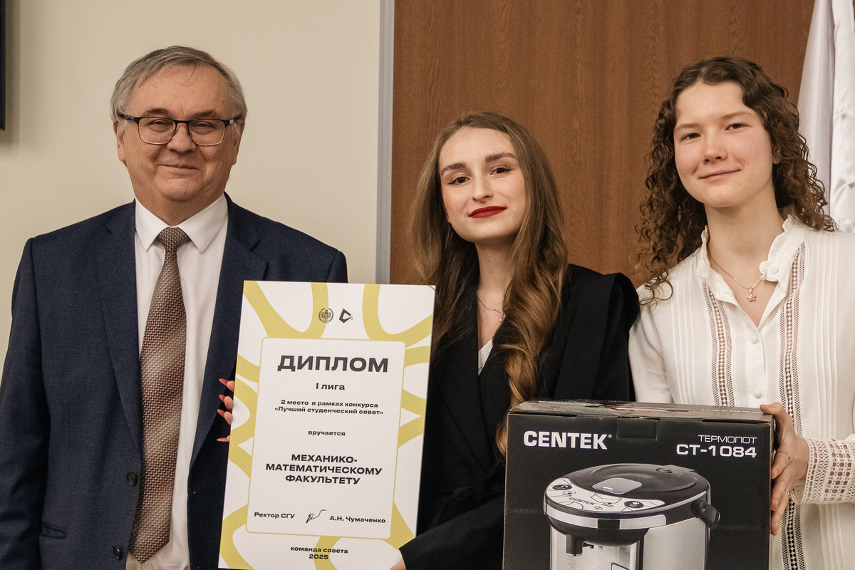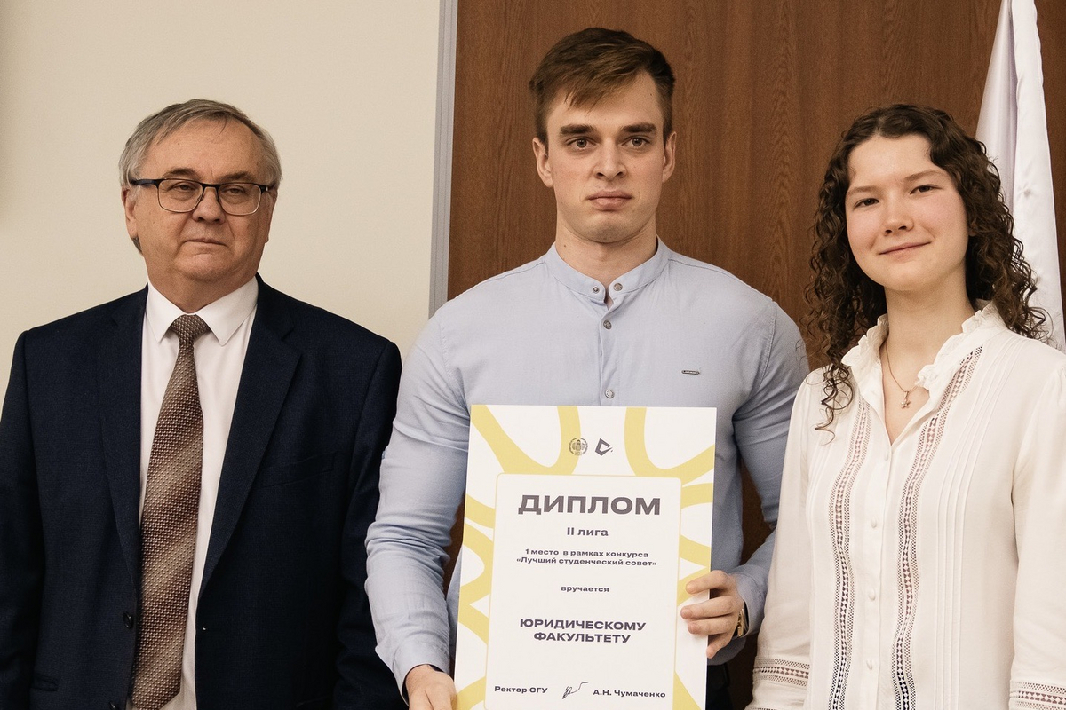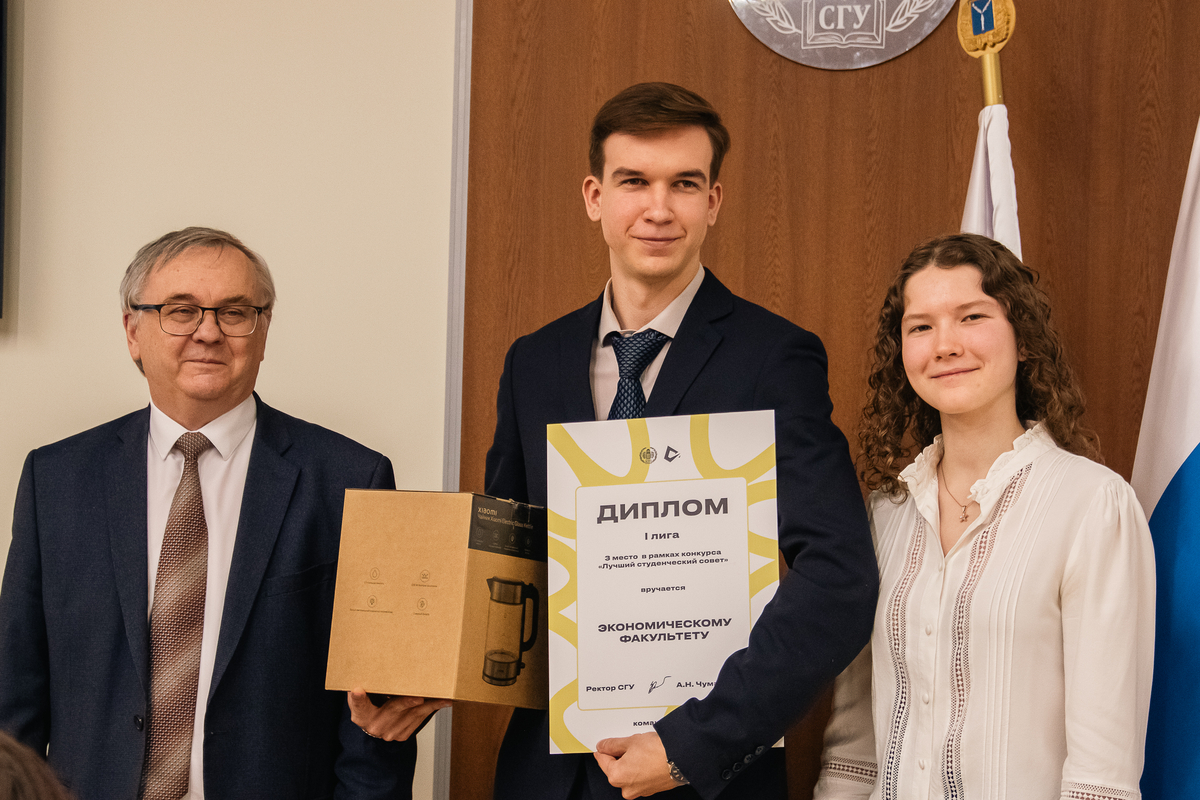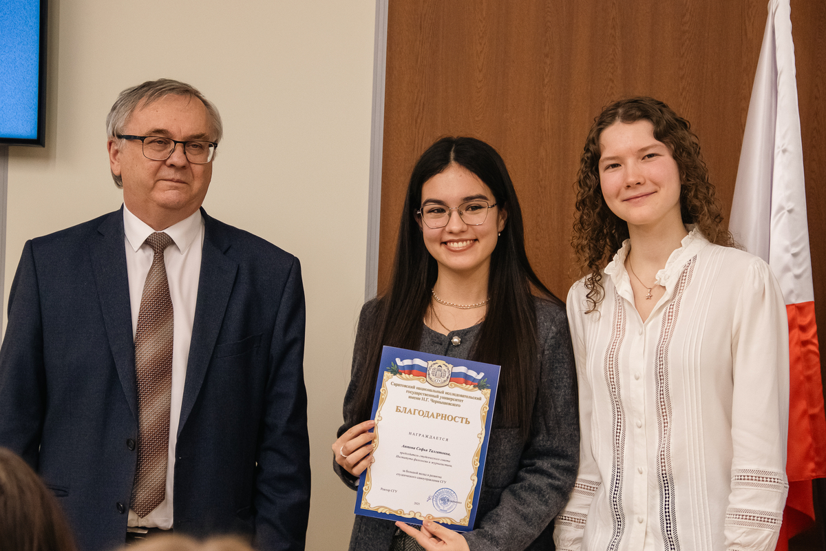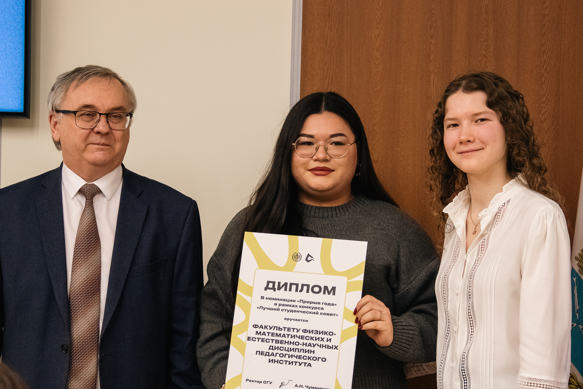 Торжественное награждение провели ректор А.Н. Чумаченко и председатель Совета студентов и аспирантов СГУ Кира Макаричева.