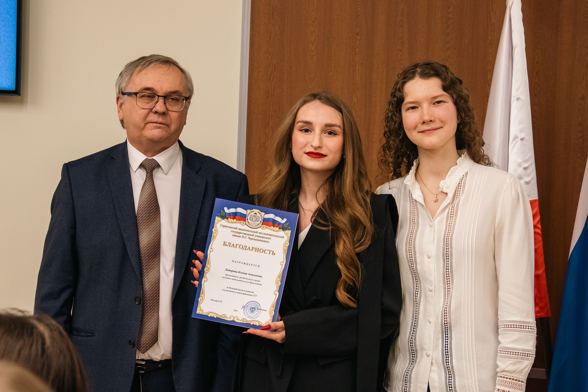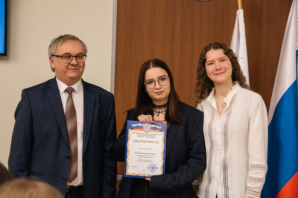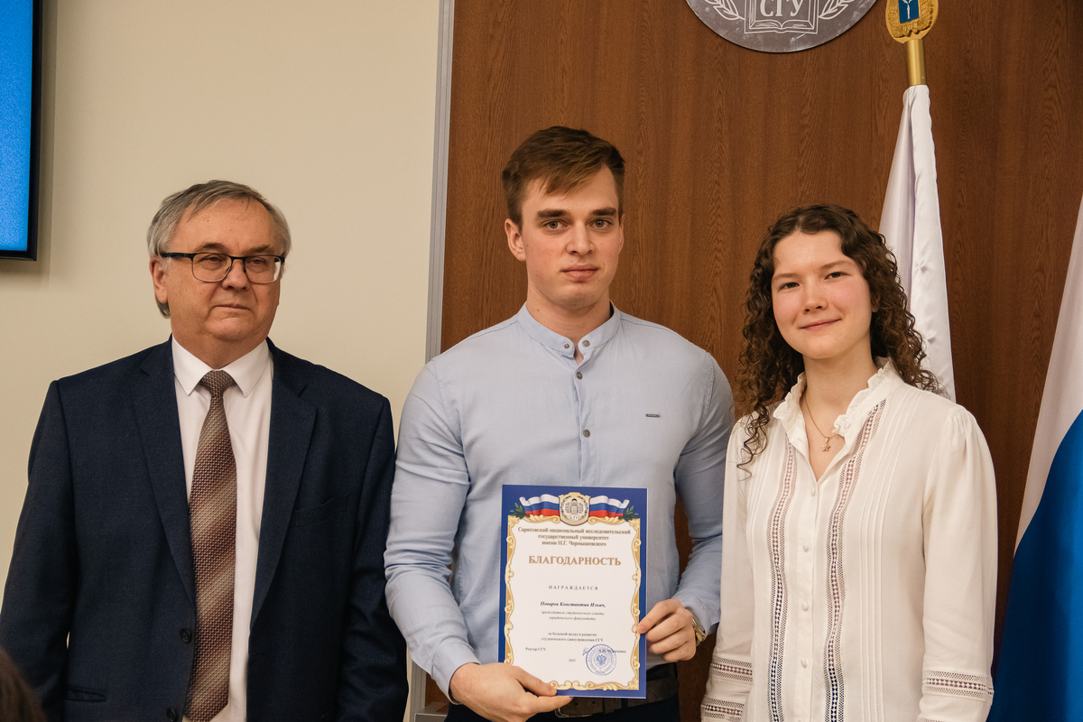 За большой вклад в развитие студенческого самоуправления СГУ А.Н. Чумаченко отметил благодарностями отличившихся председателей студенческих советов. Среди них: