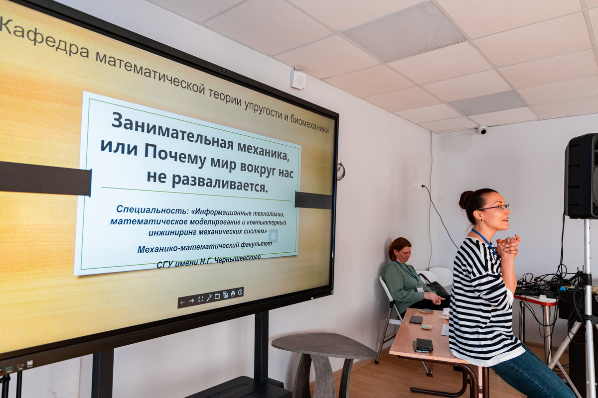 Сотрудники кафедры математической теории упругости и биомеханики Е.Ю. Крылова, И.В. Папкова и А.В. Доль представили лекцию «Занимательная механика», организовали мастер-класс по 3D-моделированию в программе «SolidWorks». Участники смоделировали на компьютерах объёмные фигуры.