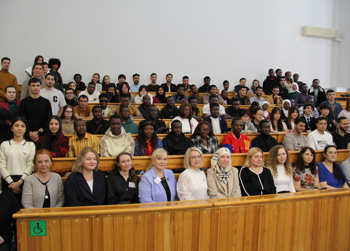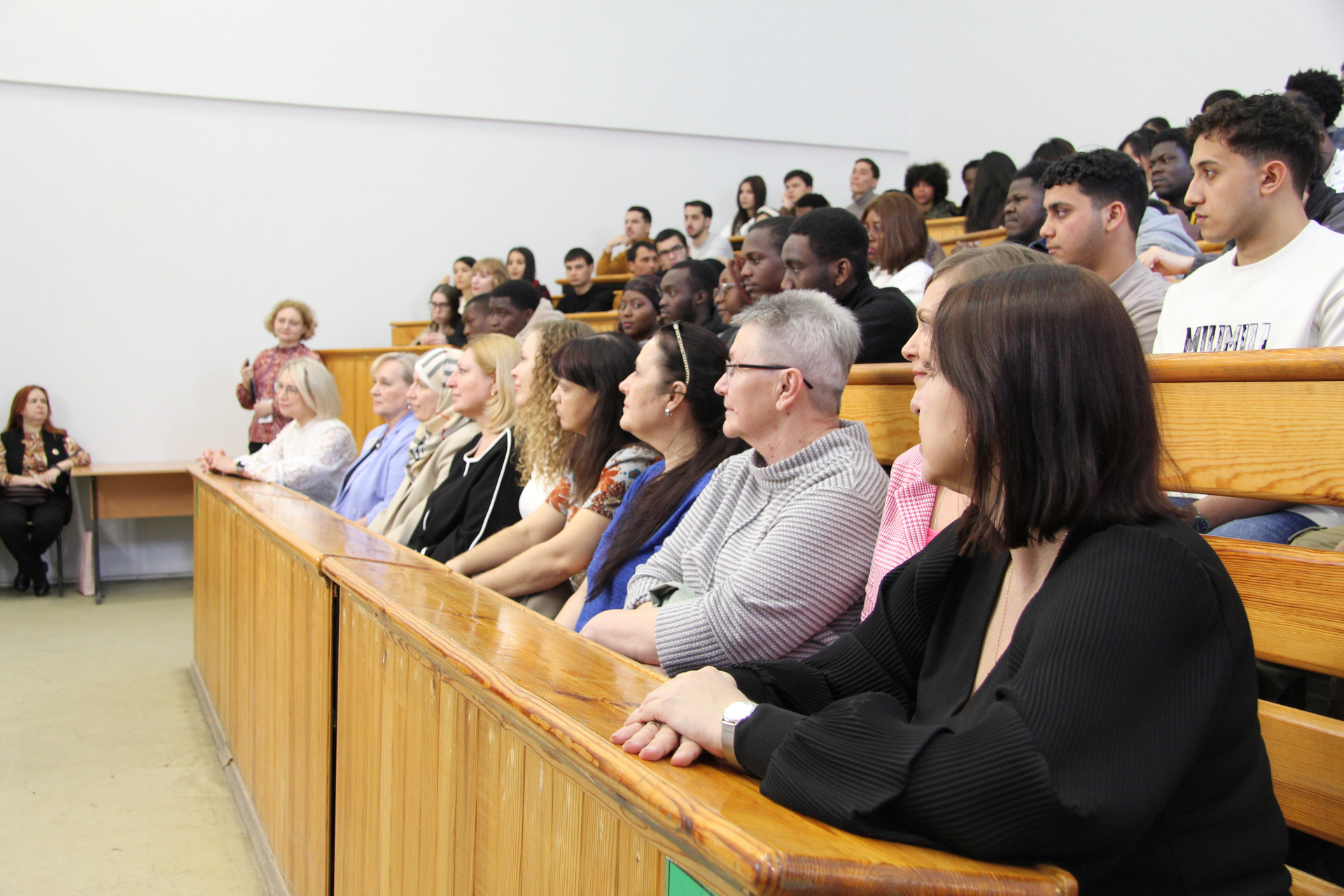 Сегодня у нас настоящий большой праздник. Как приятно нам видеть здесь вас – представителей разных стран мира, народов, говорящих на разных языках. Вас объединило здесь то, что вы приехали в Россию – великую страну, то, что вы учитесь и живёте в Саратове – прекрасном городе на Волге, где так много старинных вузов, и вы имеете возможность общаться с замечательными преподавателями, которые дадут вам важные знания. И, конечно, вас объединило изучение русского языка, который откроет для вас новые возможности. Желаю вам успехов!