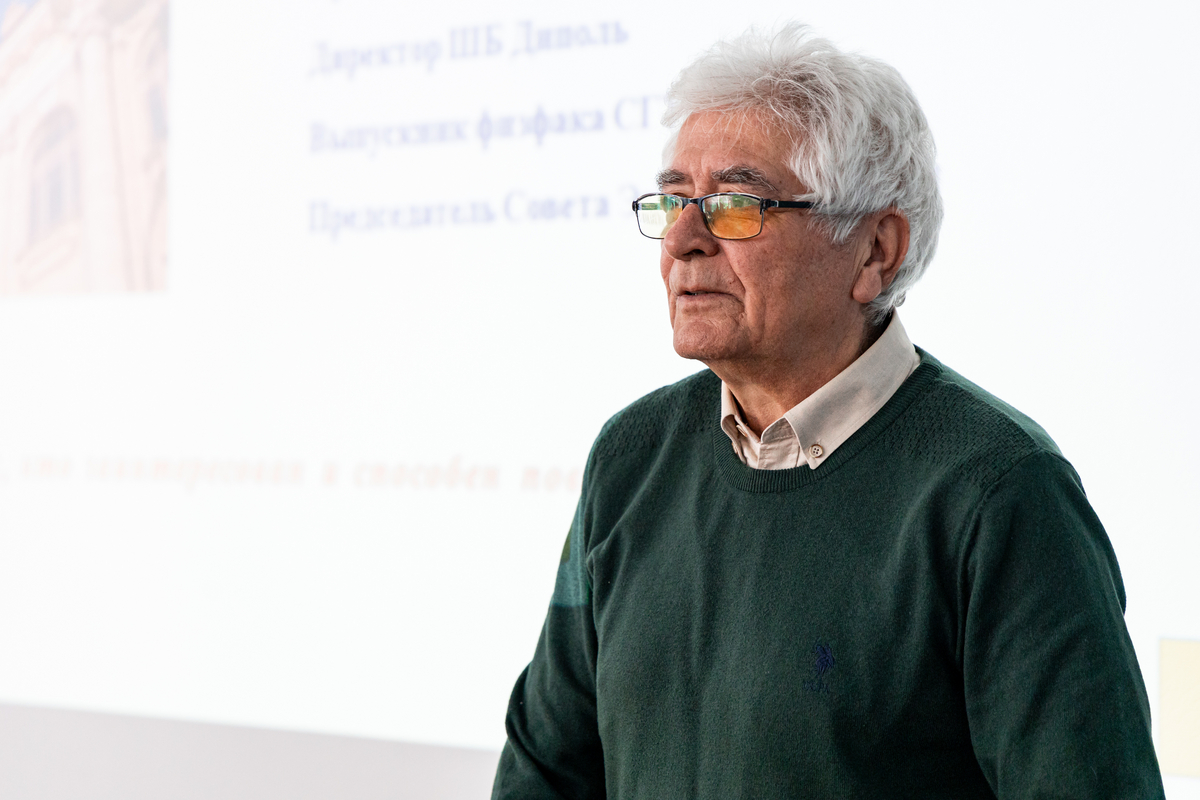 К обсуждению стратегии развития ИнФиза на бизнес-завтраке активно подключились и внешние эксперты. Проблемный контур задал директор школы бизнеса «Диполь», выпускник физического факультета СГУ В.Л. Видро. В центре его размышлений оказались вопросы, связанные с проектированием и сборкой разных типов поддерживающих сообществ внутри и вокруг университета.