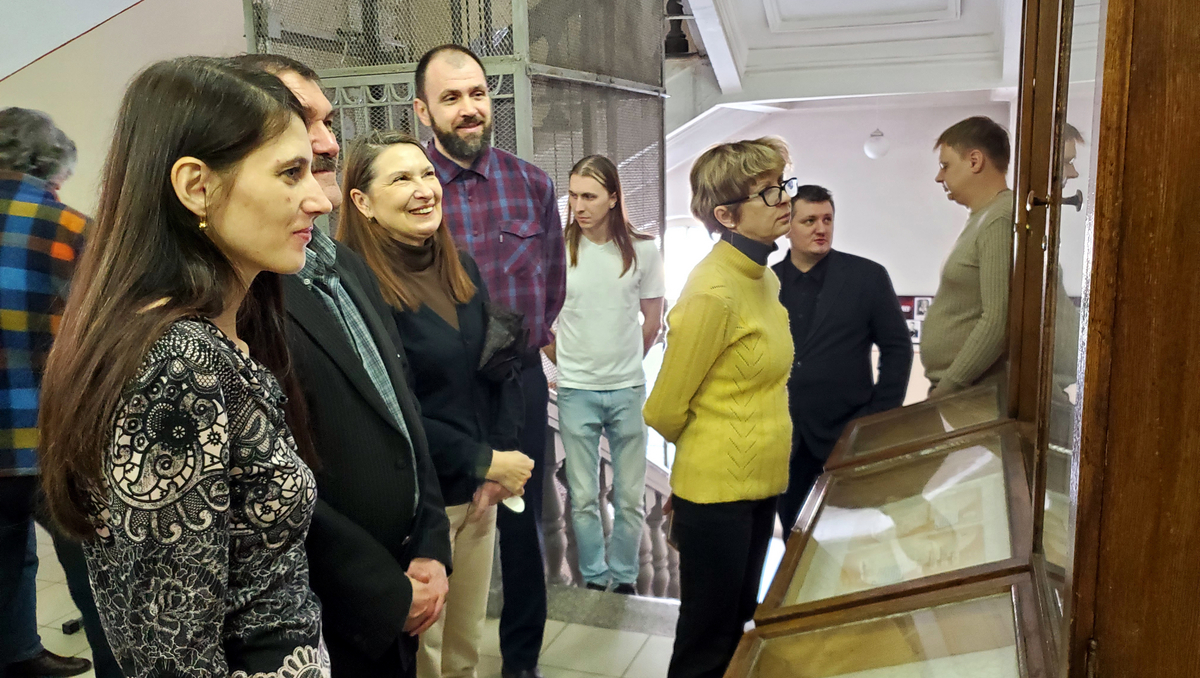 Главный библиотекарь отдела массовой работы ЗНБ Т.В. Гордеева, подготовившая материалы экспозиции, открыла выставку. Татьяна Владимировна подробно рассказала о представленном материале, отражающем славный 60-летний путь старейшего сотрудника кафедры физики твёрдого тела и Института физики В.Ф. Названова с момента начала его работы в Саратовском университете до наших дней.