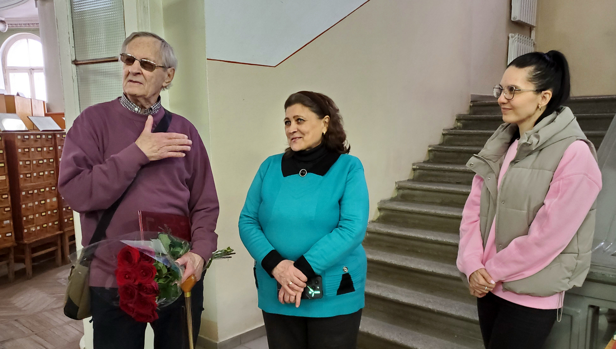 Василий Фёдорович выразил благодарность всем присутствовавшим, пообщался со своими бывшими студентами, с сотрудниками научной библиотеки, которых он очень любит и которые уважают его.