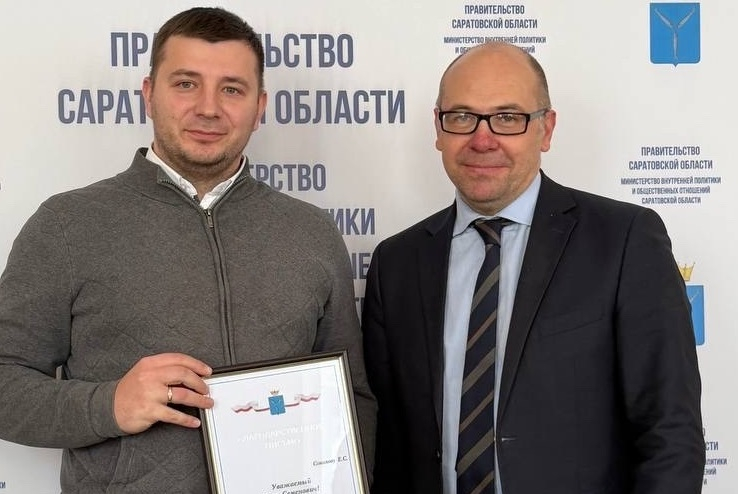 За активное участие в реализации молодёжных инициатив на территории региона Е.С. Соколов отмечен благодарственным письмом Губернатора Саратовской области.