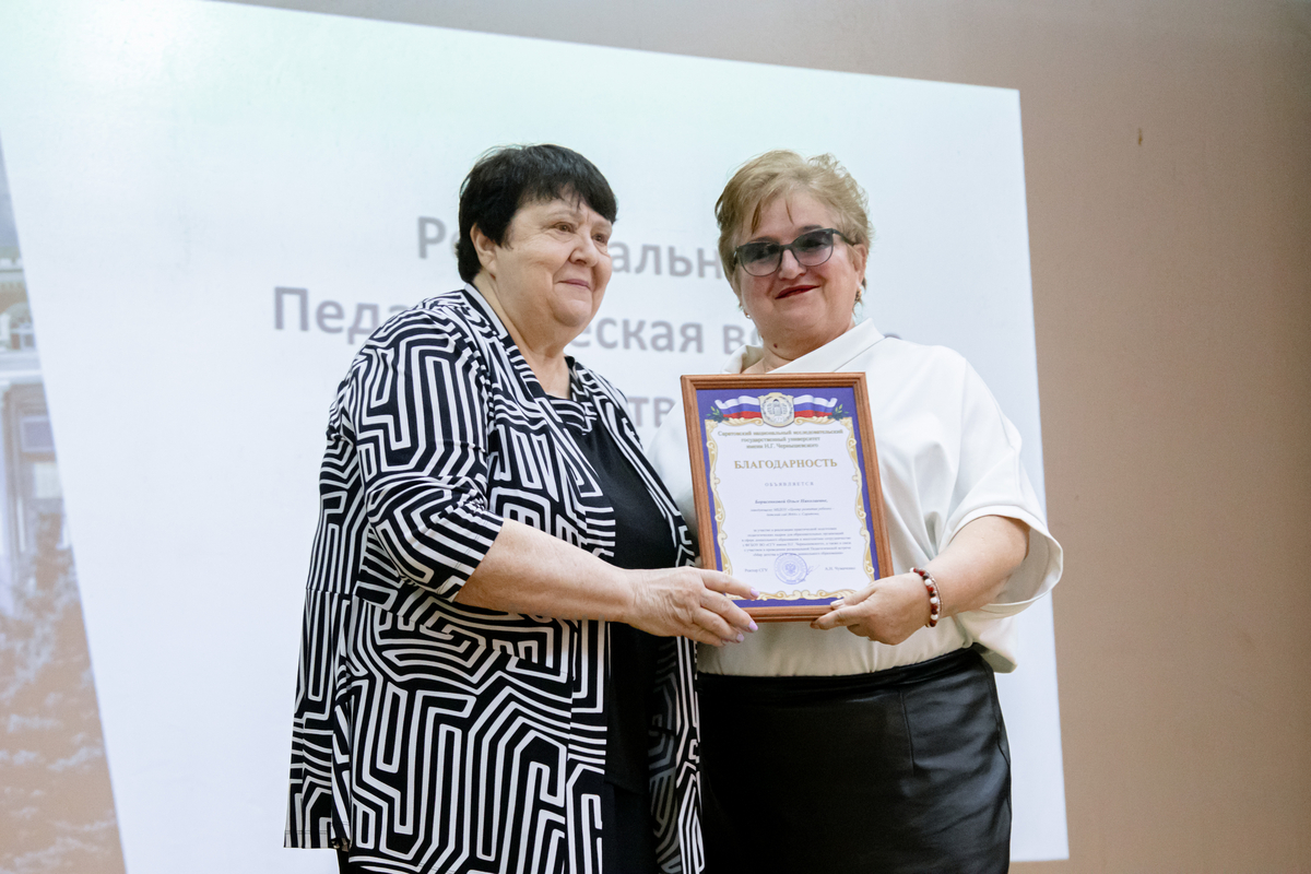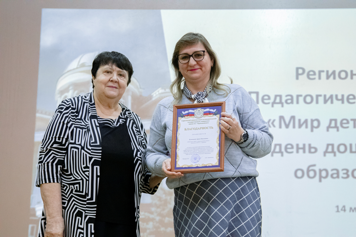 Елена Генриховна вручила благодарственные письма ректора СГУ А.Н. Чумаченко сотрудникам дошкольных образовательных организаций за участие в реализации практической подготовки педагогических кадров для системы дошкольного образования и многолетнее сотрудничество с Саратовским университетом.