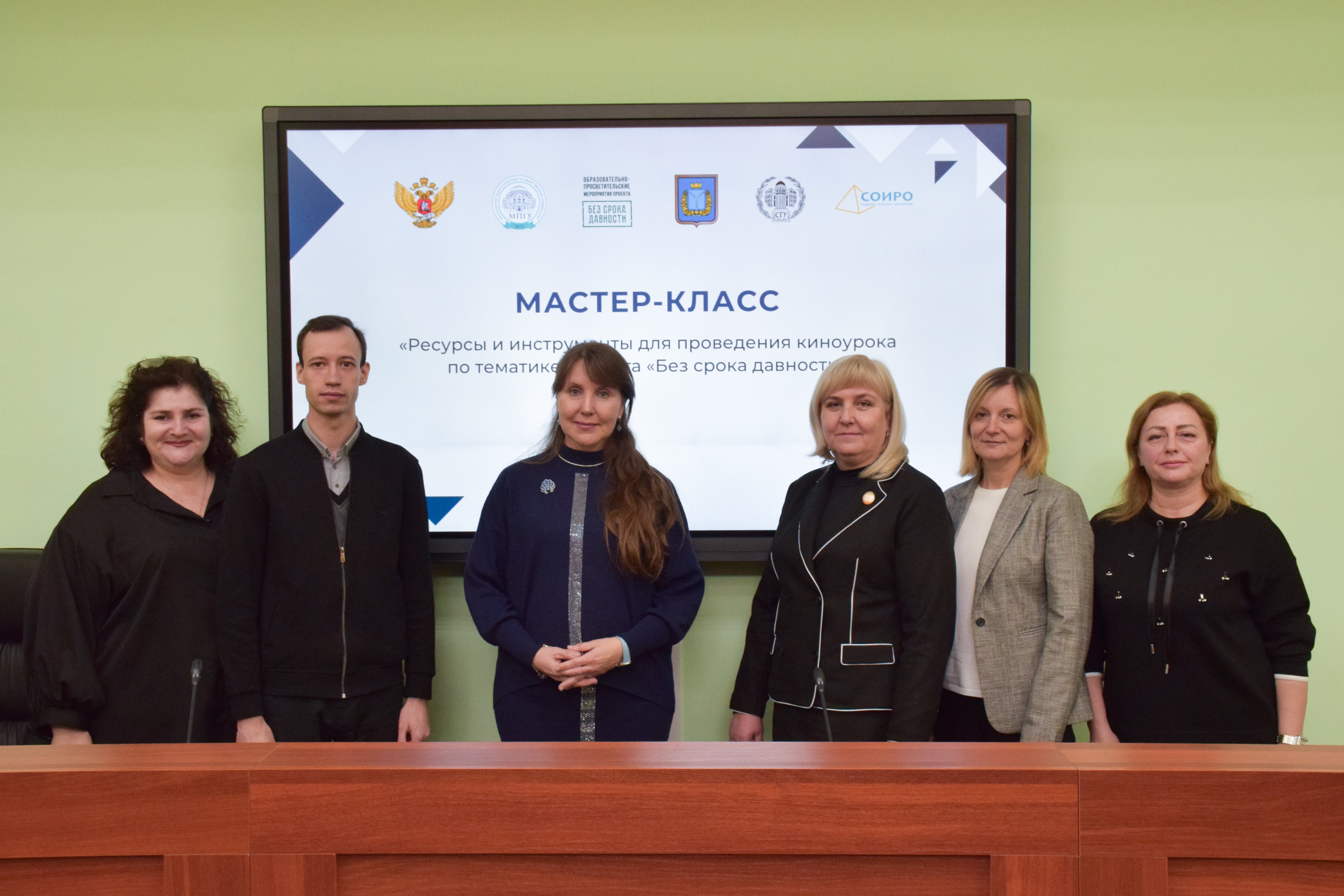 Завершился интенсив круглым столом «Эффективные практики реализации проекта "Без срока давности" средствами кинопедагогики», который провёл ведущий специалист Управления общественных проектов МПГУ А.С. Саенко. В рамках этого мероприятия учителя Саратовской области презентовали эффективные образовательные и воспитательные практики в рамках рассматриваемой темы.