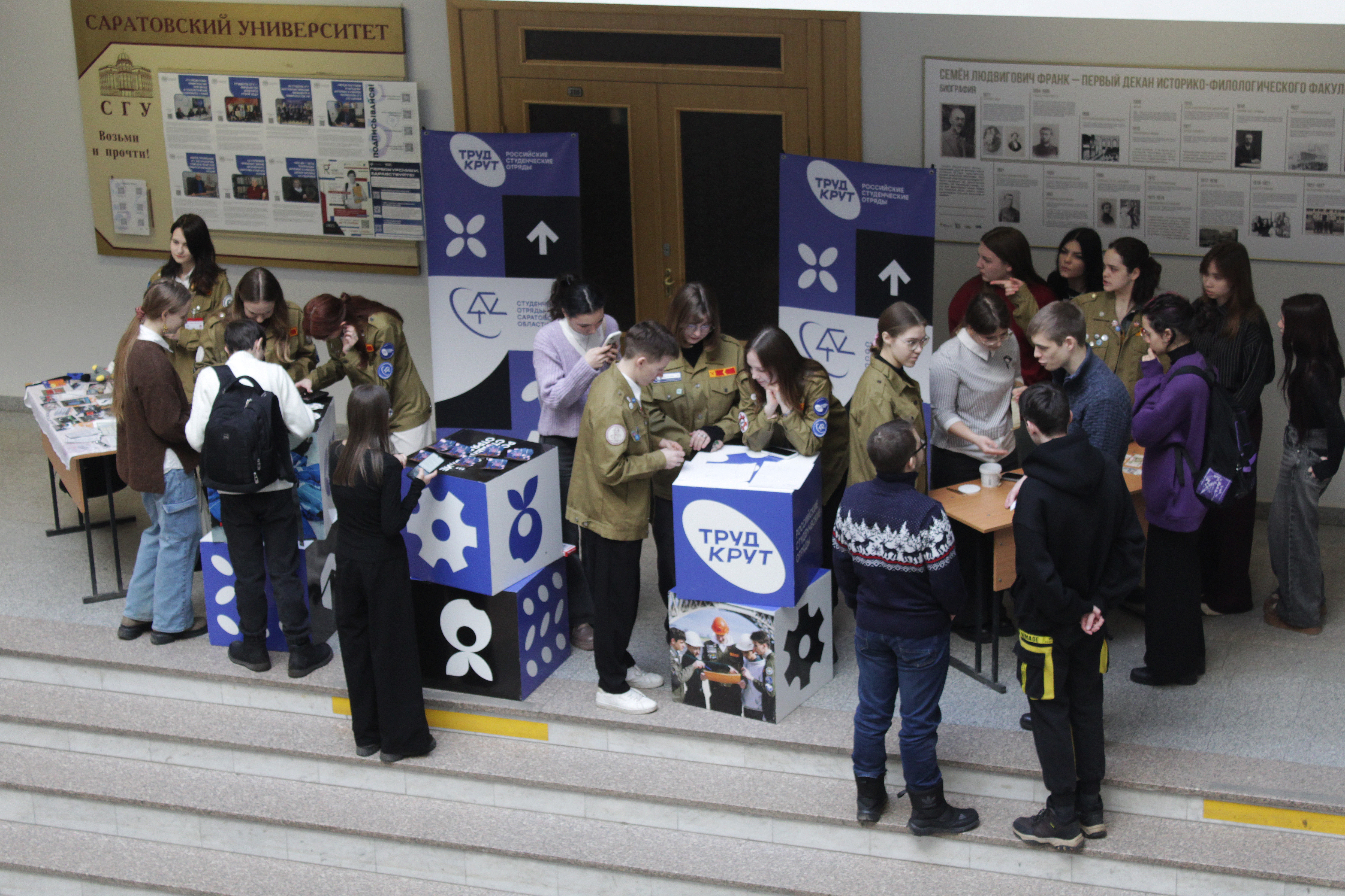 17 февраля в СГУ отметили День Российских студенческих отрядов. В XI корпусе СГУ штаб РСО СГУ организовал интерактивные станции, где активисты рассказали о направлениях своей работы.