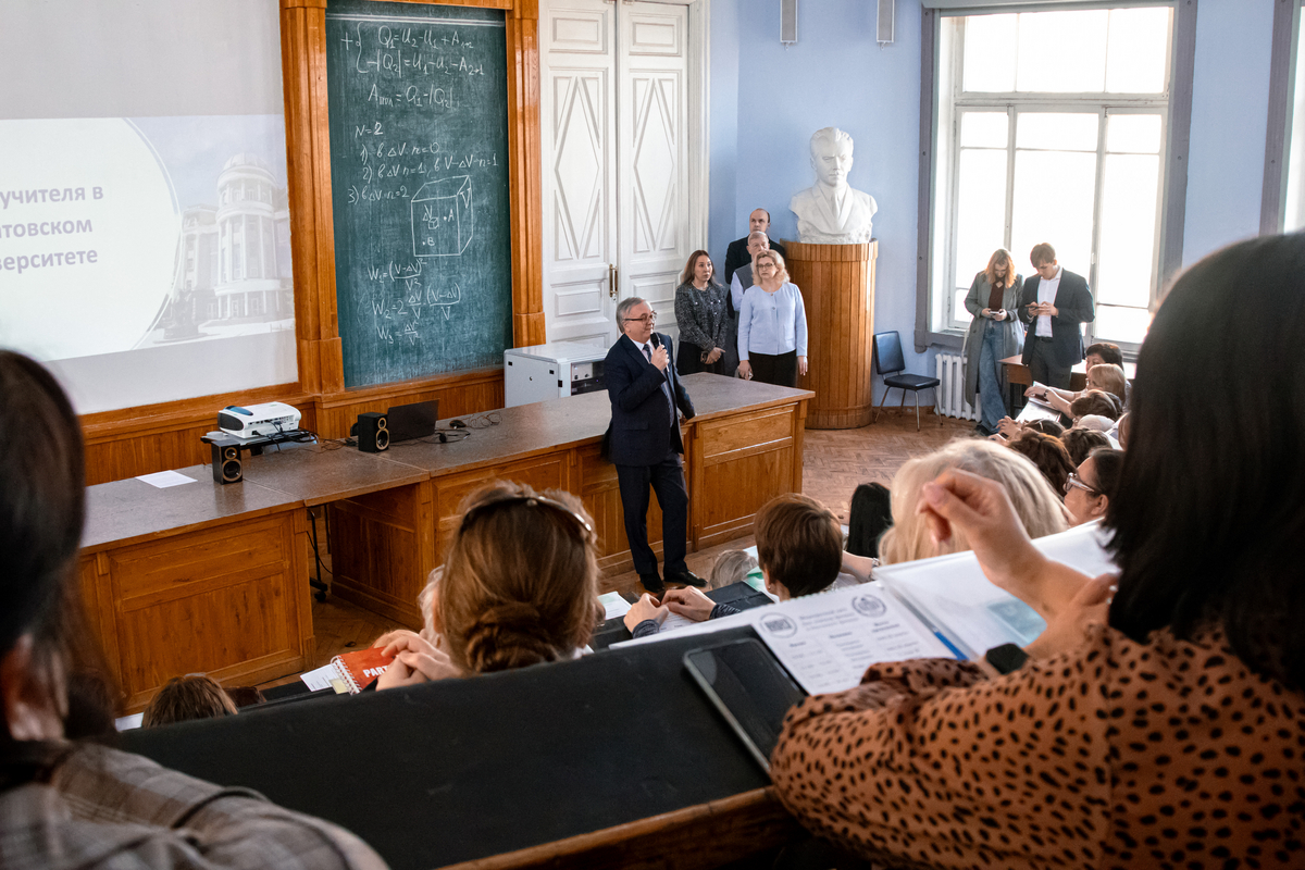 День учителя в СГУ проходит в рамках «Недели педагогического образования». Проект реализуется в рамках стратегической цели «Технологические кадры» программы развития «Приоритет-2030».